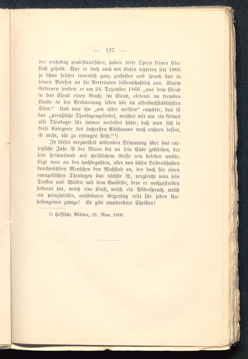 In dieser verzweifelt wütenden Stimmung über das ent-setzliche Jahr ist der Mann bis an sein Ende geblieben, dersein Heimatland mit christlichem Geiste neu beleben wollte.Legt man an den hochbegabten, aber von bösen Leidenschaftendurchwühlten Menschen den Maßstab an, der doch für einenevangelischen Theologen das nächste ist, vergleicht man seinDenken und Wirken mit dem Vorbilde, dein er nachzustrebenbekannt hat, welch eine Kluft, welch ein Widerspruch, welchein prinzipieller, unlösbarer Gegensatz tritt für jeden Un-befangenen zutage! Es gibt wunderbare Christen!
