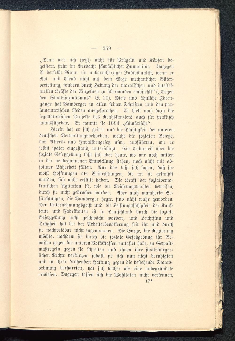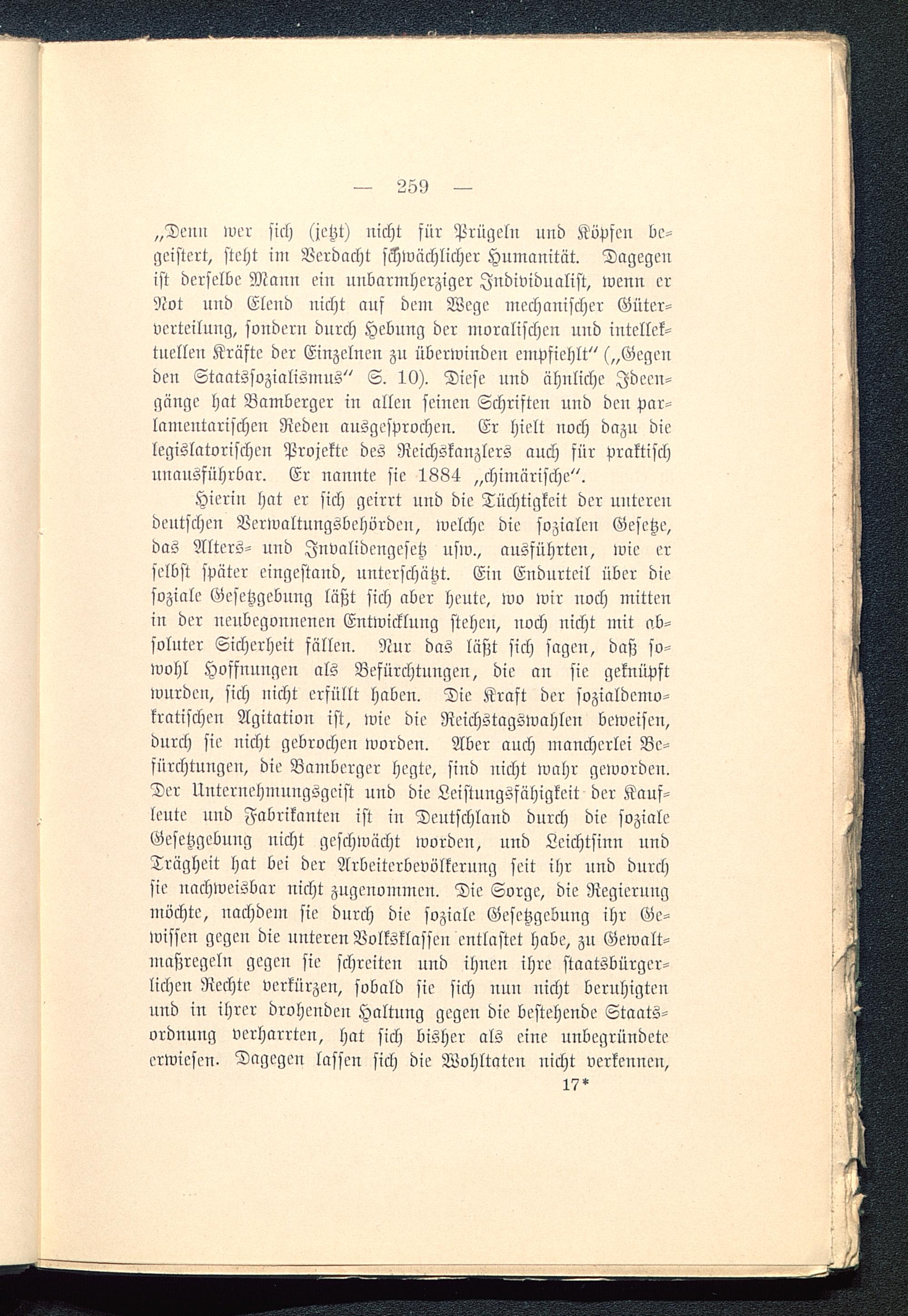 „Demi wer sich (jetzt) nicht für Prügeln und Köpfen be-geistert, steht im Berdacht schwächlicher Humanität. Dagegenist derselbe Mann ein unbarmherziger Individualist, wenn erNot und Elend nicht auf dem Wege mechanischer Güter-vcrteilung, sondern durch Hebung der moralischen und intellek-tuellen Kräfte der Einzelnen zu überwinden empfiehlt" („Gegenden Staatssozialismus" S. 10). Diese und ähnliche Jdecn-gänge hat Bamberger in allen seinen Schriften und den par-lamentarischen Reden ausgesprochen. Er hielt noch dazu dielegislatorischen Projekte des Reichskanzlers auch für praktischunausführbar. Er nannte sie 1884 „chimärische".