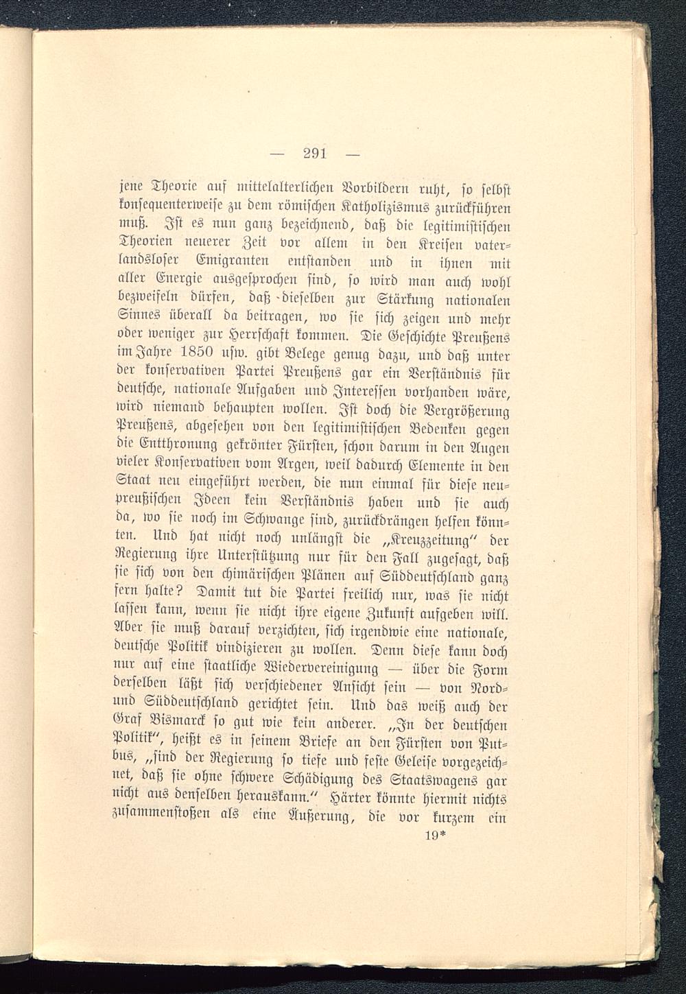 jene Theorie auf mittelalterlichen Vorbildern ruht, so selbstkonsequenterweise zu dem römischen Katholizismus zurückführenmuß. Ist es nun ganz bezeichnend, daß die legitimistischenTheorien neuerer Zeit vor allem in den Kreisen vater-landsloser Emigranten entstanden und in ihnen mitaller Energie ausgesprochen sind, so wird man auch wohlbezweifeln dürfen, daß - dieselben zur Stärkung nationalenSinnes überall da beitragen, wo sie sich zeigen und mehroder weniger zur Herrschaft kommen. Die Geschichte Preußens im Jahre 1850 usw. gibt Belege genug dazu, und daß unterder konservativen Partei Preußens gar ein Verständnis fürdeutsche, nationale Aufgaben und Interessen vorhanden wäre,wird niemand behaupten wollen. Ist doch die VergrößerungPreußens , abgesehen von den legitimistischen Bedenken gegendie Entthronung gekrönter Fürsten, schon darum in den Augenvieler Konservativen vom Argen, Iveil dadurch Elemente in denStaat neu eingeführt werden, die nun einmal für diese nen-Preußischen Ideen kein Verständnis haben und sie auchda, wo sie noch im Schwange sind, zurückdrängen helfen könn-ten. lind hat nicht noch unlängst die „Kreuzzeitung " derRegierung ihre Unterstützung nur für den Fall zugesagt, daßsie sich von den chimärischen Plänen auf Süddcutschland ganzfern halte? Damit tut die Partei freilich nur, was sie nichtlassen kann, wenn sie nicht ihre eigene Zukunft aufgeben will.Aber sie muß darauf verzichten, sich irgendwie eine nationale,deutsche Politik vindizieren zu wollen. Denn diese kann dochnur auf eine staatliche Wiedervereinigung — über die Formderselben läßt sich verschiedener Ansicht sein — von Nord-und Süddcutschland gerichtet sein. Und das weiß auch derGraf Bismarck so gut wie kein anderer. „In der deutschenPolitik", heißt es in seinem Briefe an den Fürsten von Put-bns, „sind der Regierung so tiefe und feste Geleise vorgezeich-net, daß sie ohne schwere Schädigung des Staatswagens gar-nicht aus denselben herauskann." Härter könnte hiermit nichtszusammenstoßen als eine Äußerung, die vor kurzem ein