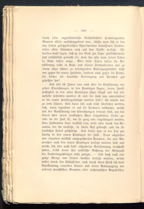 durch seine organisatorische Geschicklichkeit hervorragendenMannes allein ausschlaggebend war, fühlte man sich in denvon seinen gesetzgeberischen Experimenten betroffenen Landes-teilen allen Stimmen nach auf das Tiefste verletzt. Siewerden Wohl sagen, daß ja der Graf zur Lippe glücklicherweisejetzt unschädlich gemacht sei, man ihn also samt seinen Tatenin Ruhe lassen möge. Aber diese Taten lassen die Be-völkerung nicht in Ruhe und dienen Übelwollenden nur zueinem allzu schwer zu beseitigenden Aufreizungsmittel nichtnur gegen die neuen Zustände, sondern auch gegen die Partei,die bisher die staatliche Vereinigung mit Preußen gutgeheißen hat!
