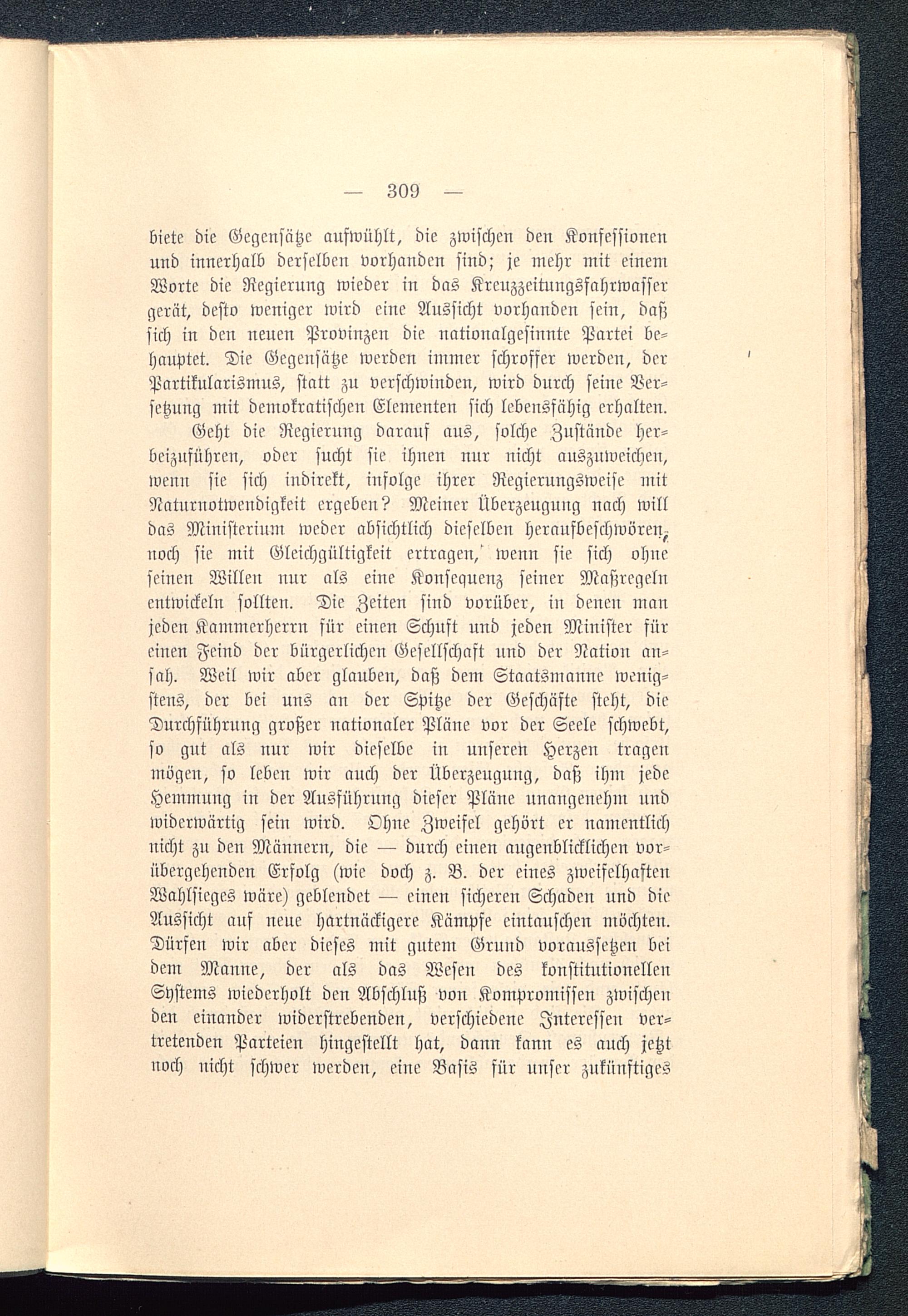 biete die Gegensätze aufwühlt, die zwischen den Konfessionenund innerhalb derselben vorhanden sind; je mehr mit einemWorte die Regierung wieder in das Kreuzzeitungsfahrwassergerät, desto weniger wird eine Aussicht vorhanden sein, das;sich in den neuen Provinzen die nationalgesinnte Partei be-hauptet. Die Gegensätze werden immer schroffer werden, derPartikularismus, statt zu verschwinden, wird durch seine Ver-setzung mit demokratischen Elementen sich lebensfähig erhalten.
