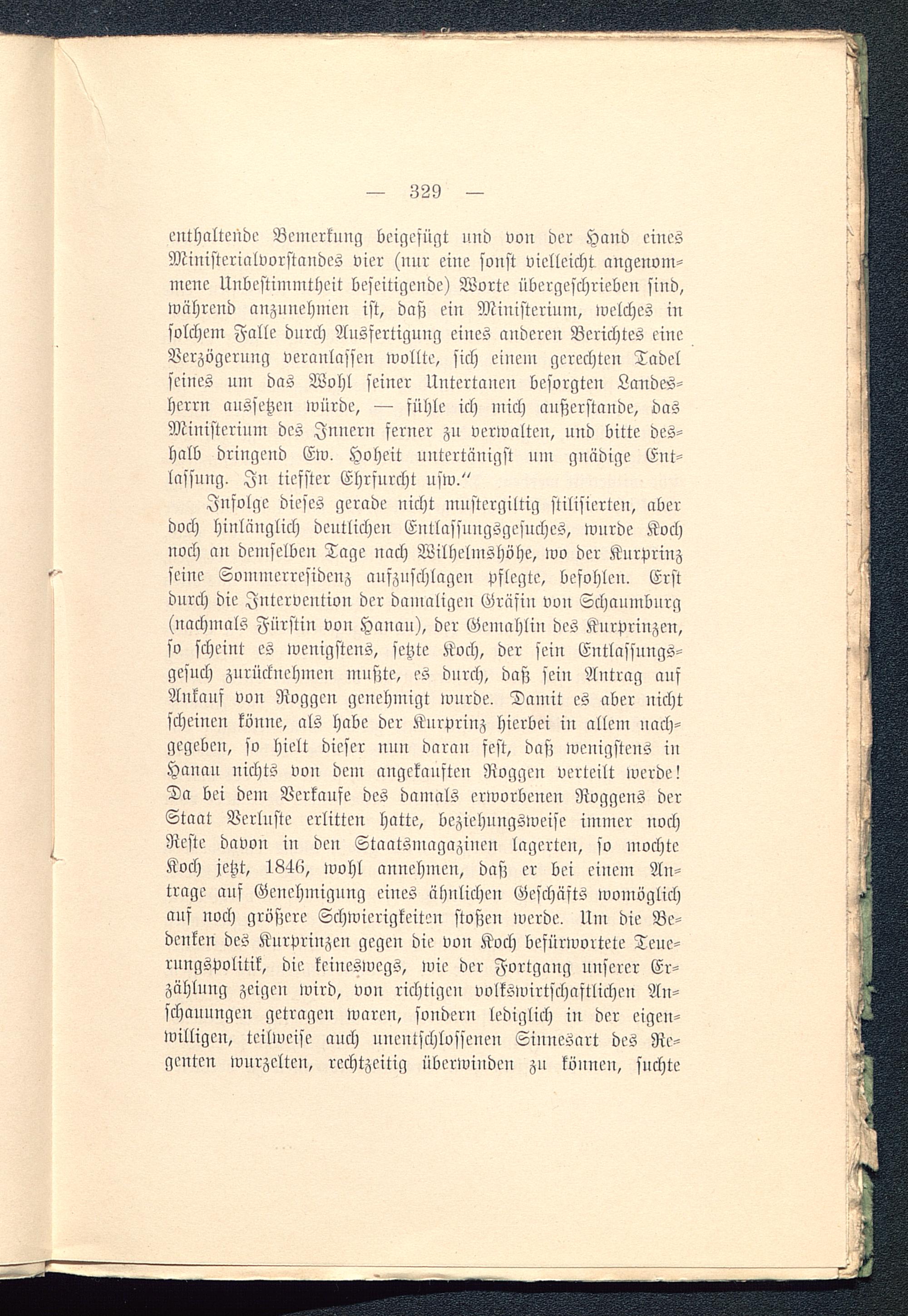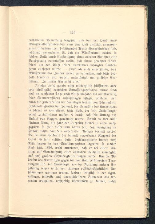 Infolge dieses gerade nicht mnstergiltig stilisierten, aberdoch hinlänglich deutlichen Entlassungsgesuches, wurde Kochnoch an demselben Tage nach Wilhelmshöhe, wo der Kurprinzseine Sommerresidcnz aufzuschlagen pflegte, befohlen. Erstdurch die Intervention der damaligen Gräfin von Schaumburg (nachmals Fürstin von Hanau ), der Gemahlin des Kurprinzen,so scheint es wenigstens, setzte Koch, der sein Entlassungs-gesuch zurücknehmen mußte, es durch, daß sein Antrag aufAnkauf von Roggen genehmigt wurde. Damit es aber nichtscheinen könne, als habe der Kurprinz hierbei in allem nach-gegeben, so hielt dieser nun daran fest, daß wenigstens inHanan nichts von dein angekauften Roggen verteilt werde!Da bei dem Verkaufe des damals erworbenen Roggens derStaat Verluste erlitten hatte, beziehungsweise immer nochReste davon in den Staatsmagazinen lagerten, so mochteKoch jetzt, 1846, wohl annehmen, daß er bei einem An-trage auf Genehmigung eines ähnlichen Geschäfts womöglichauf noch größere Schwierigkeiten stoßen werde. Um die Be-denken des Kurprinzen gegen die von Koch befürwortete Teue-rungspolitik, die keineswegs, wie der Fortgang unserer Er-zählung zeigen wird, von richtigen volkswirtschaftlichen An-schauungen getragen waren, sondern lediglich in der eigen-willigen, teilweise auch unentschlossenen Sinnesart des Re-genten wurzelten, rechtzeitig überwinden zu können, suchte
