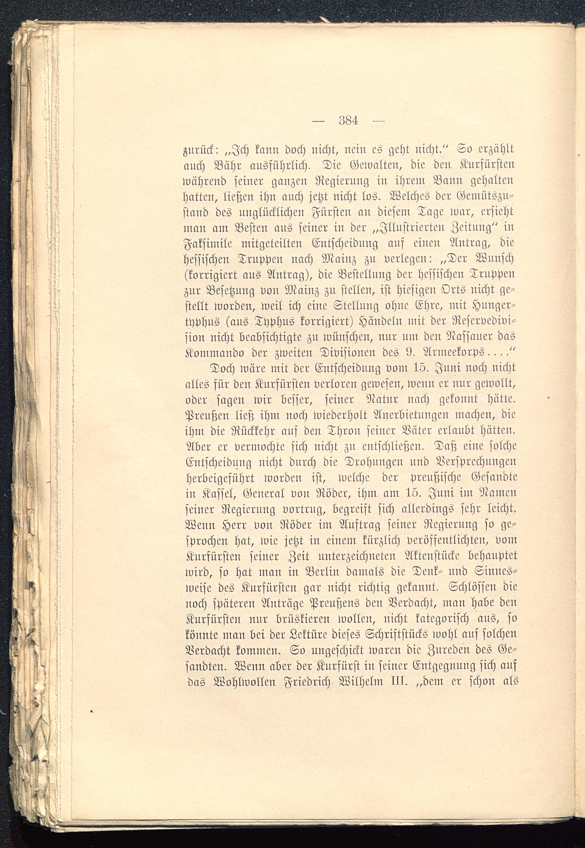 zurück: „Ich kann doch nicht, nein es geht nicht." So erzähltauch Bahr ausführlich. Die Gewalten, die den Kurfürstenwährend seiner ganzen Regierung in ihrem Bann gehaltenhatten, ließen ihn auch jetzt nicht los. Welches der Gemütszu-stand des unglücklichen Fürsten an diesem Tage war, ersiehtman am Besten aus seiner in der „Illustrierten Zeitung " inFaksimile mitgeteilten Entscheidung auf einen Antrag, diehessischen Truppen nach Mainz zu verlegen: „Der Wunsch(korrigiert aus Antrag), die Bestellung der hessischen Truppenzur Besetzung von Mainz zu stellen, ist hiesigen Orts nicht ge-stellt worden, weil ich eine Stellung ohne Ehre, mit Hunger-typhus (aus Typhus korrigiert) Händeln mit der Reservedivi-sion nicht beabsichtigte zu wünschen, nur um den Nassauer dasKommando der zweiten Divisionen des l). Armeekorps...."