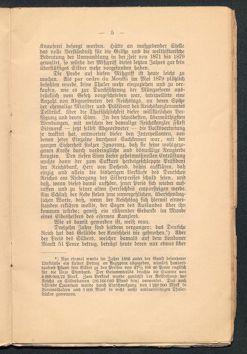 Dreizehn Jahre sind seitdem vergangen; das DeutscheReich hat das Gelübde der Keuschheit nie gebrochen?) Aberder Preis des Silbers, welcher, damals auf dem Londoner Markt 51 Pence betrug, beträgt heute deren nur etwas über
