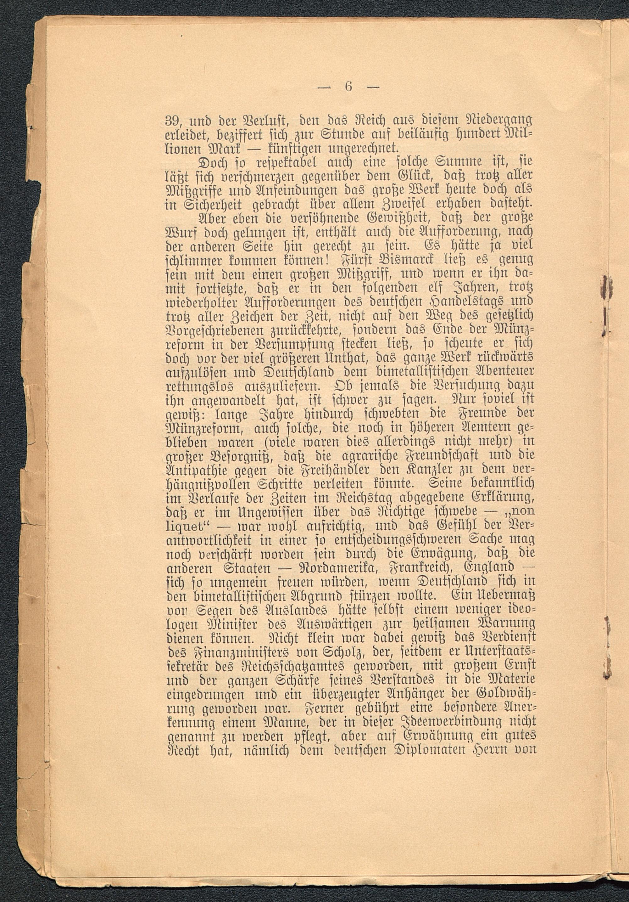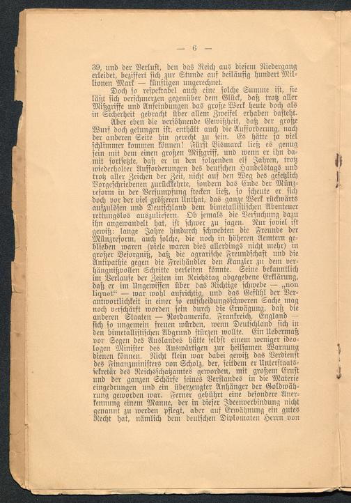 Aber eben die versöhnende Gewißheit, daß der großeWurf doch gelungeu ist, enthält auch die Aufforderung, nachder anderen Seite hin gerecht zu sein. Es hätte ja vielschlimmer kommen können! Fürst Bismarck ließ es genugfern mit dem eineu großen Mißgriff, und wenn er ihn da-mit fortsetzte, daß er in den folgenden elf Jahren, trotzwiederholter Aufforderungen des deutschen Handelstags undtrotz aller Zeichen der Zeit, nicht auf den Weg des gesetzlichVorgeschriebenen zurückkehrte, sondern das Ende der Münz-reform in der Versumpfung stecken ließ, so scheute er sichdoch vor der viel größeren Unthat, das ganze Werk rückwärtsaufzulösen und Deutschland dem bimetallistischen Abenteuerrettungslos auszuliefern. Ob jemals die Versuchung dazuihn angewandelt hat, ist schwer zu sagen. Nur soviel rstgewiß: lange Jahre hindurch schwebten die Freunde derMünzreform, auch solche, die noch in höheren Aemtern ge-blieben waren (viele waren dies allerdings nicht mehr) ingroßer Besorgniß, daß die agrarische Freundschaft und dieAntipathie gegen die Freihändler den Kanzler zn dem ver-hängnißvollen Schritte verleiten könnte. Seine bekanntlichim Verlaufe der Zeiten im Reichstag abgegebene Erklärung,daß er im Ungewissen über das Nichtige' schwebe — „uouligust," — war wohl aufrichtig, und das Gefühl der Ver-antwortlichkeit in einer so entscheidungsschweren Sache magnoch verschärft worden sein durch die Erwägung, daß dieanderen Staaten — Nordamerika, Frankreich, England —sich so ungemein freuen würden, wenn Deutschland sich inden bimetallistischen Abgrund stürzen wollte. Ein Uebermaßvor Segen des Auslandes hätte selbst einem weniger ideo-logen Minister des Auswärtigen zur heilsamen Warnungdienen können. Nicht klein wär dabei gewiß das Verdienstdes Finanzministers von Scholz, der, seitdem er Unterstaats-sekretär des Reichsschatzamtes geworden, mit großem Ernstund der ganzen «schärfe seines Verstandes in die Materieeingedrungen und ein überzeugter Anhänger der Goldwäh-rung geworden war. Ferner gebührt eine besondere Aner-kennung einem Manne, der in dieser Jdeenverbindung nichtgenannt zu werden pflegt, aber auf Erwähnung ein gutesRecht hat, nämlich dem deutschen Diplomaten Herrn von