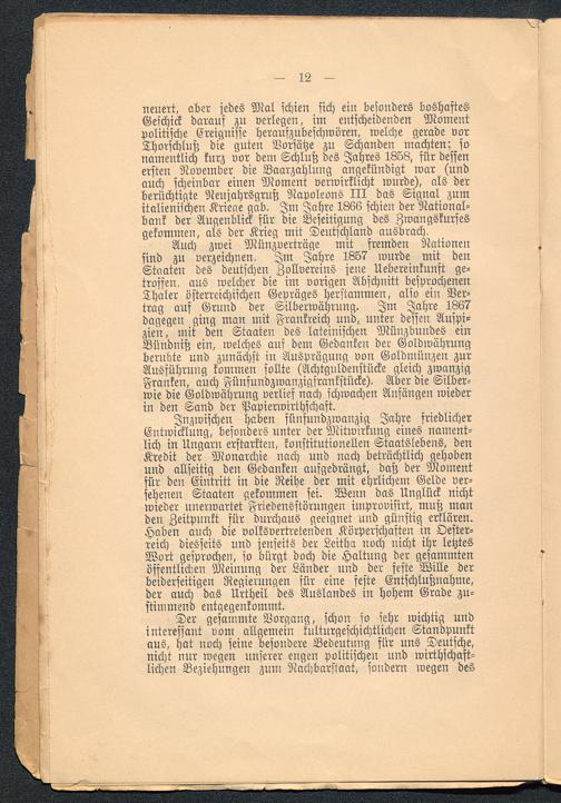 neuert, aber jedes Mal schien sich ein besonders boshaftesGeschick darauf zu verlegen, im entscheidenden Momentpolitische Ereignisse heraufzubeschwören, welche gerade vorThorschluß die guten Vorsätze zu Schanden machten; sonamentlich kurz vor dem Schluß des Jahres 1858, für dessenersten November die Baarzahlung angekündigt war (undauch scheinbar einen Moment verwirklicht wurde), als derberüchtigte Neujahrsgruß Napoleons III das Signal zumitalienischen Kriege gab. Im Jahre 1866 schien der National-bauk der Augenblick für die Beseitigung des Zwangskursesgekommen, als der Krieg mit Deutschland ausbrach.