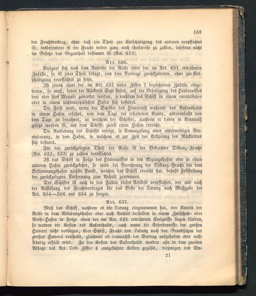 Ist das Schiff in Folge des Hindernisses in den Abgangshafen oder in einenanderen Hafen zurückgekehrt, so wird bei Berechnung der Distanz-Fracht der demBestimmungshafen nächste Punkt, welchen das Schiff erreicht hat, behufs Feststellungder zurückgelegten Entfernung zum Anhalt genommen.