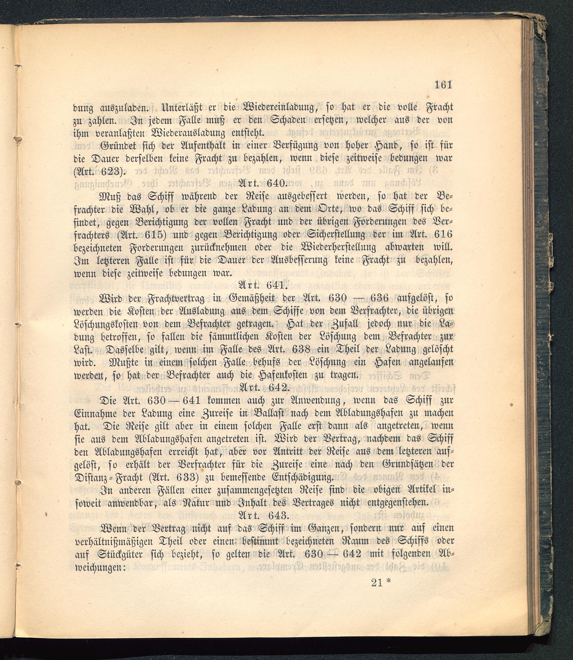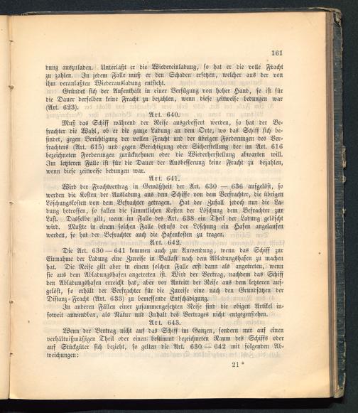 Wenn der Vertrag nicht auf das Schiff im Ganzen, sondern nur auf einenverhältnißmäßigen Theil oder einen bestimmt bezeichneten Raum des Schiffs oderauf Stückgüter sich bezieht, so gelten die Art. 630 — 642 mit folgenden Ab-weichungen: