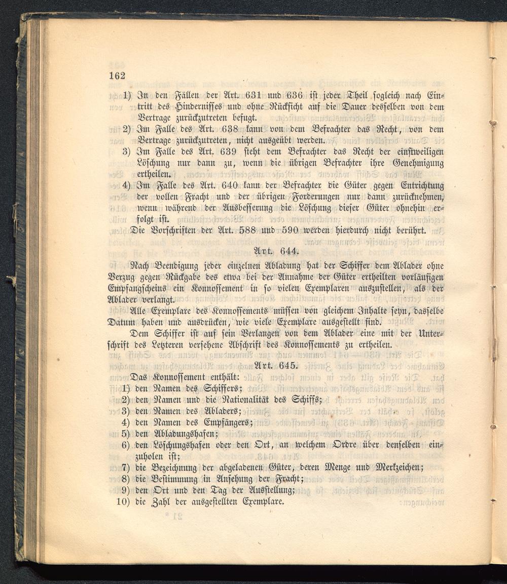 Dem Schiffer ist auf sein Verlangen von dem Ablader eine mit der Unter-schrift des Letzteren versehene Abschrift des Konnossements zu ertheilen.