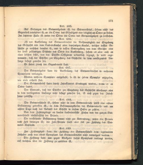 Ist vor Ausstellung des Bodmereibriefes die Nothwendigkeit der Eingehungdes Geschäfts von dem Landes-Konsul oder demjenigen Konsul, welcher dessen Ge-schäfte zu versehen berufen ist, und in dessen Ermangelung von dem Gerichte oderder sonst zuständigen Behörde des Ortes der Ausstellung, sofern es aber auch aneiner solchen fehlt, von den Schiffs-Offizieren urkundlich bezeugt, so wird ange-nommen, daß der Schiffer zur Eingehung des Geschäfts in dem vorliegenden Um-fange befugt gewesen sey.