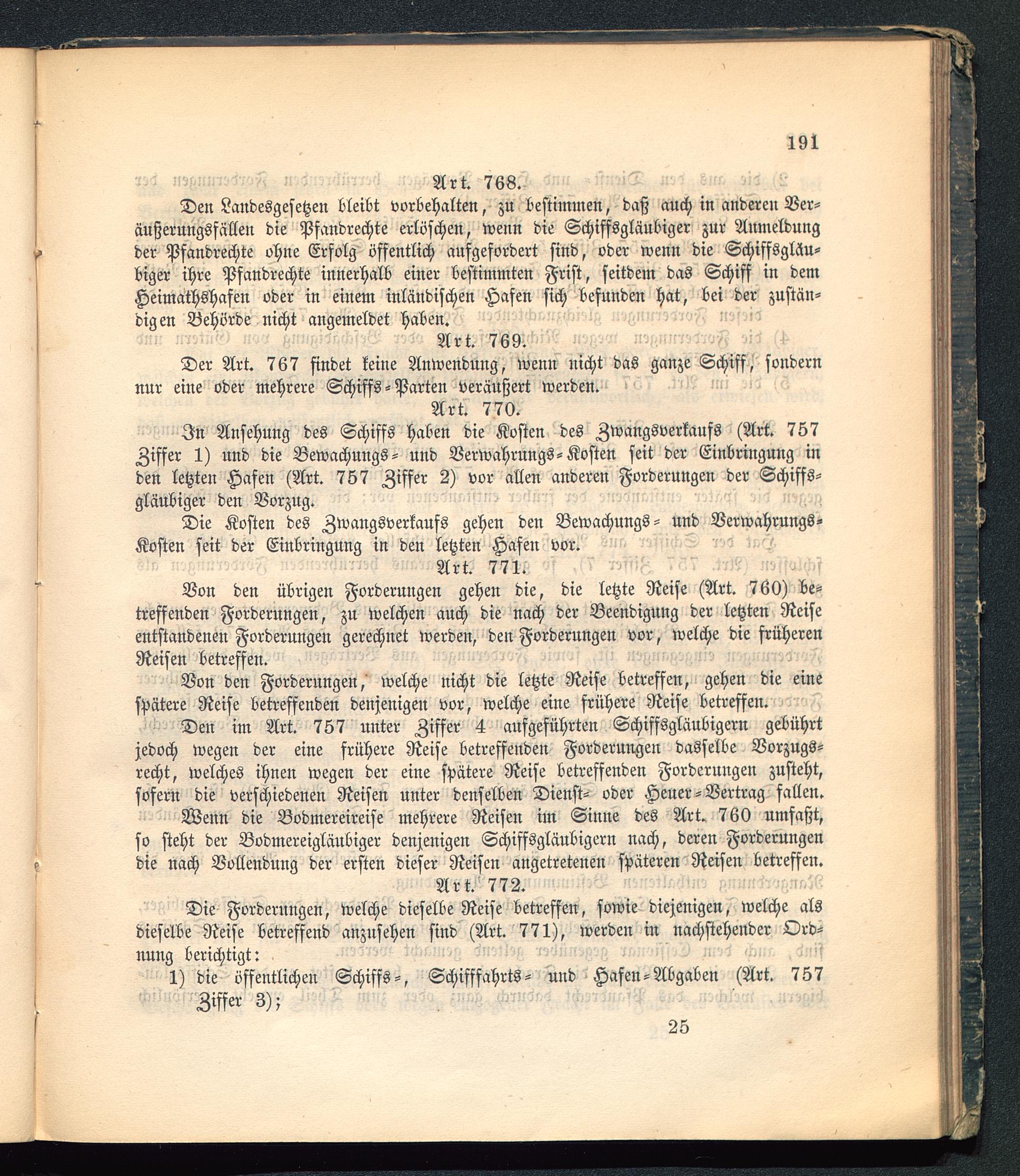1) die öffentlichen Schiffs-, Schiffsahrts- und Hafen-Abgaben (Art. 757Ziffer 3);
