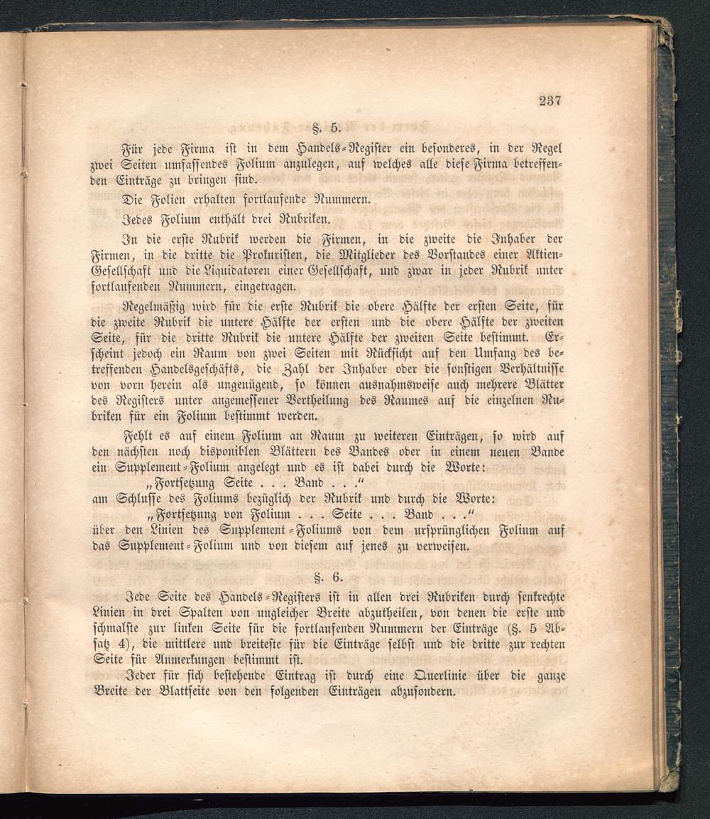 Jede Seite des Handels - Registers ist in allen drei Rubriken durch senkrechteLinien in drei Spalten von ungleicher Breite abzutheilen, von denen die erste undschmalste zur linken Seite für die fortlaufenden Nummern der Einträge (tz. 5 Ab-satz 4), die mittlere und breiteste für die Einträge selbst und die dritte zur rechtenSeite für Anmerkungen bestimmt ist.