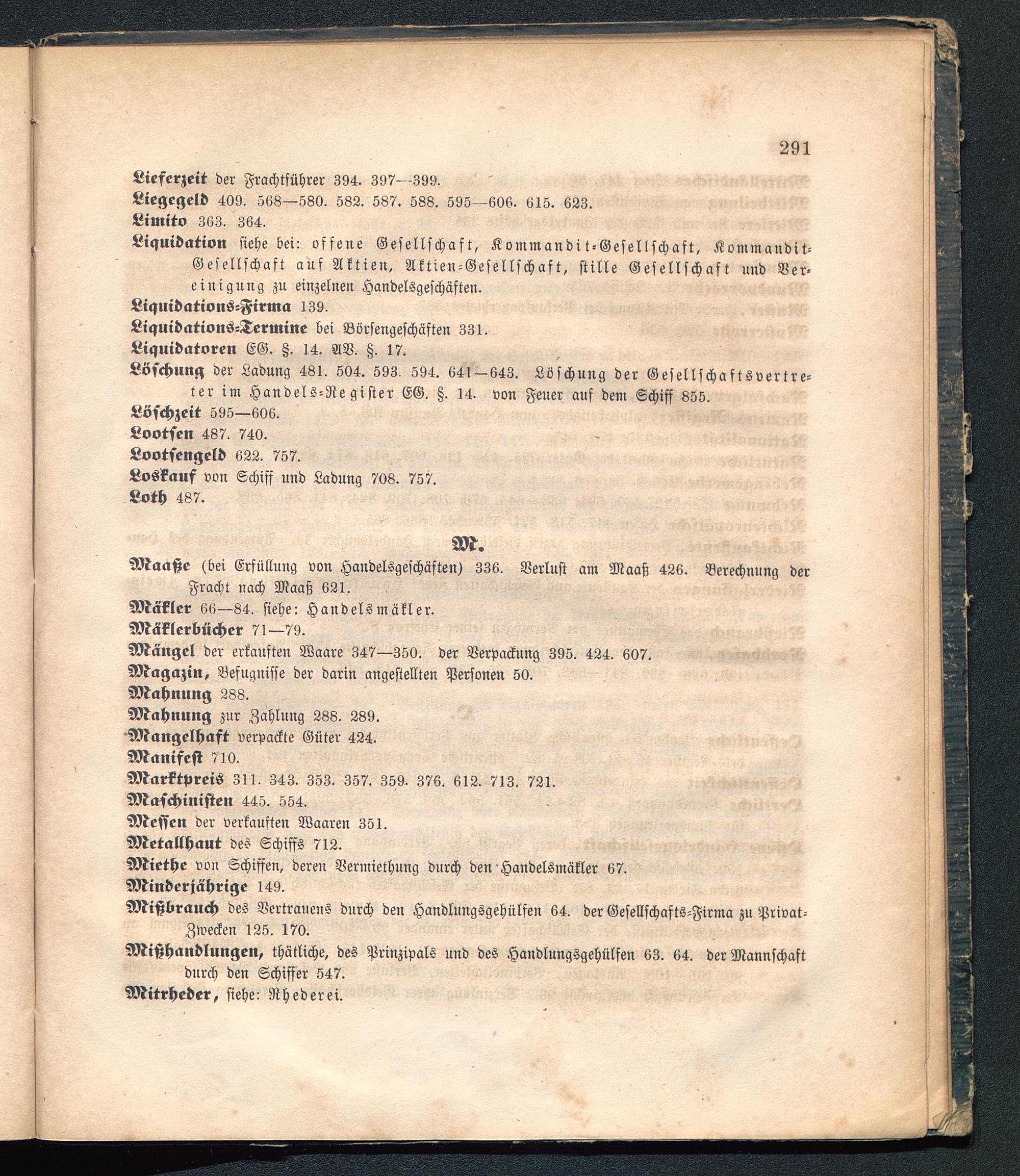 Maaße (bei Erfüllung von Handelsgeschäften) 336. Verlust am Maaß 426. Berechnung derFracht nach Maaß 621.
