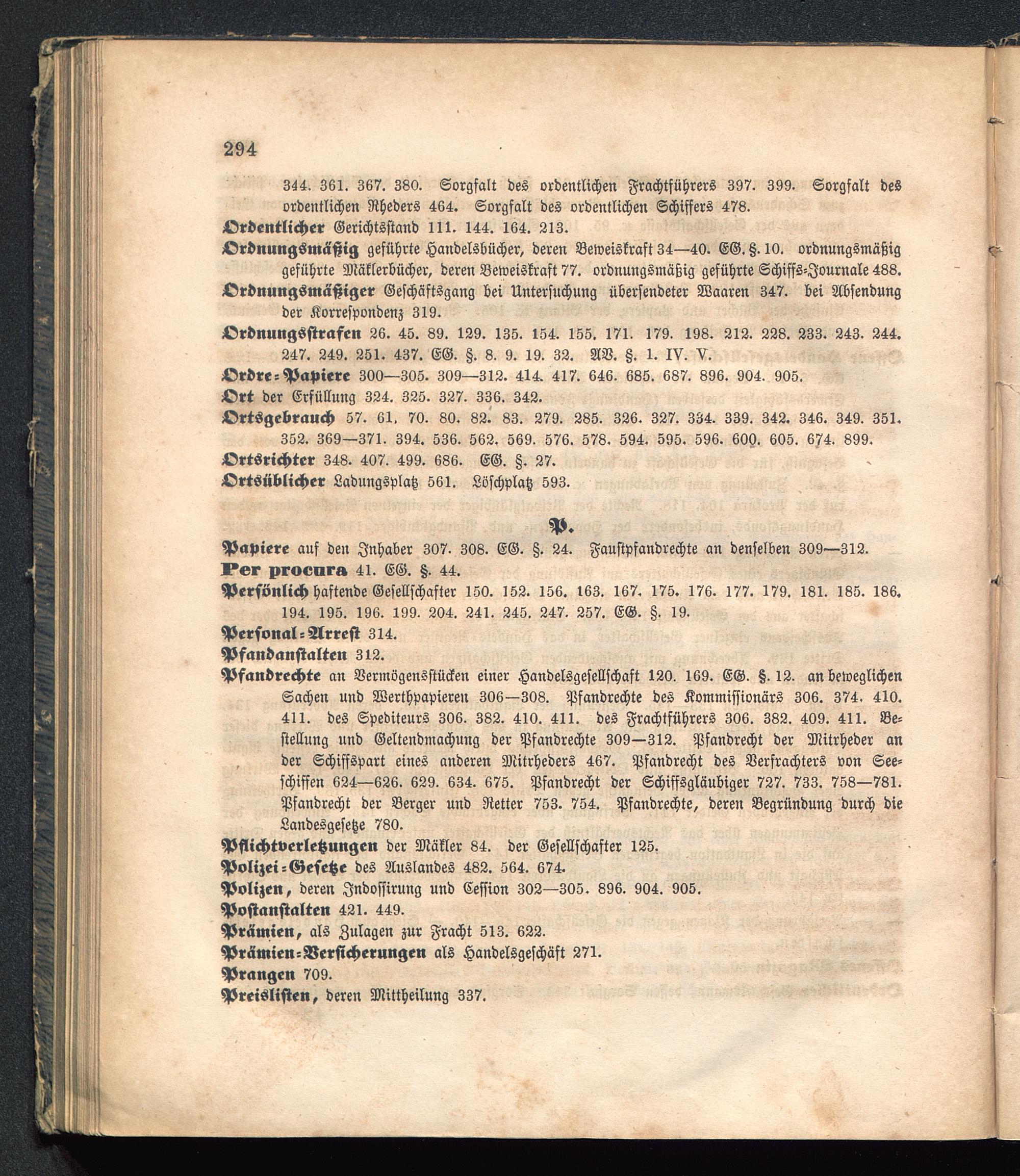 Ordnungsmäßig geführte Handelsbücher, deren Beweiskraft 34—40. EG. §. 10. ordnungsmäßiggeführte Mäklerbücher, deren Beweiskraft 77. ordnungsmäßig geführte Schiffs-Journale 488.Ordnungsmäßiger Geschäftsgang bei Untersuchung übersendeter Waaren 347. bei Absendungder Korrespondenz 319.