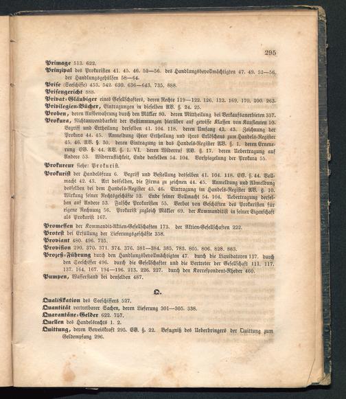 Prokurist der Handelsfrau 6. Begriff und Bestellung desselben 41. 104. 118. EG. ß. 44. Voll-macht 42. 43. Art desselben, die Firma zu zeichnen 44. 45. Anmeldung und Abmeldungdesselben bei dem Handels-Negister 45. 46. Eintragung im Handels-Negister AV. ß. 10.Wirkung seiner Rechtsgeschäfte 52. Ende seiner Vollmacht 54. 104. Uebertragung dersel-ben auf Andere 53. Falsche Prokuristen 55. Verbot von Geschäften des Prokuristen füreigene Rechnung 56. Prokurist zugleich Mäkler 69. der Kommanditist in seiner Eigenschaftals Prokurist 167.
