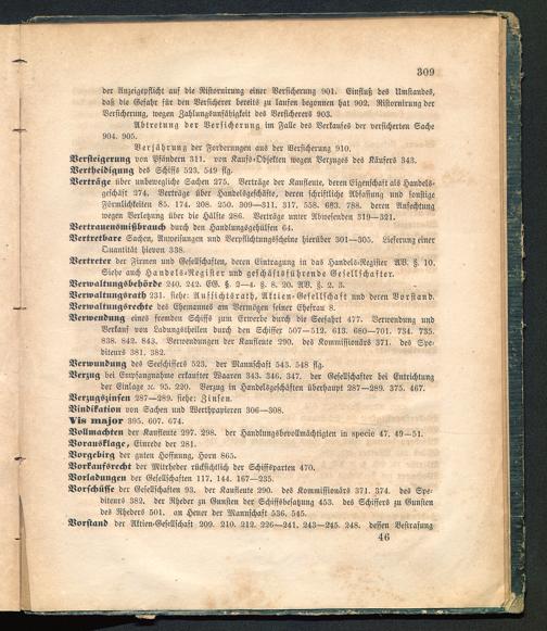 Vertrage über unbewegliche Sachen 275. Verträge der Kaufleute, deren Eigenschaft als Handels-geschäft 274. Vertrüge über Handelsgeschäfte, deren schriftliche Abfassung und sonstigeFörmlichkeiten 85. 174. 208. 250. 309—311. 317. 558. 683. 788. deren Anfechtungwegen Verletzung über die Hälfte 286. Verträge unter Abwesenden 319—321.