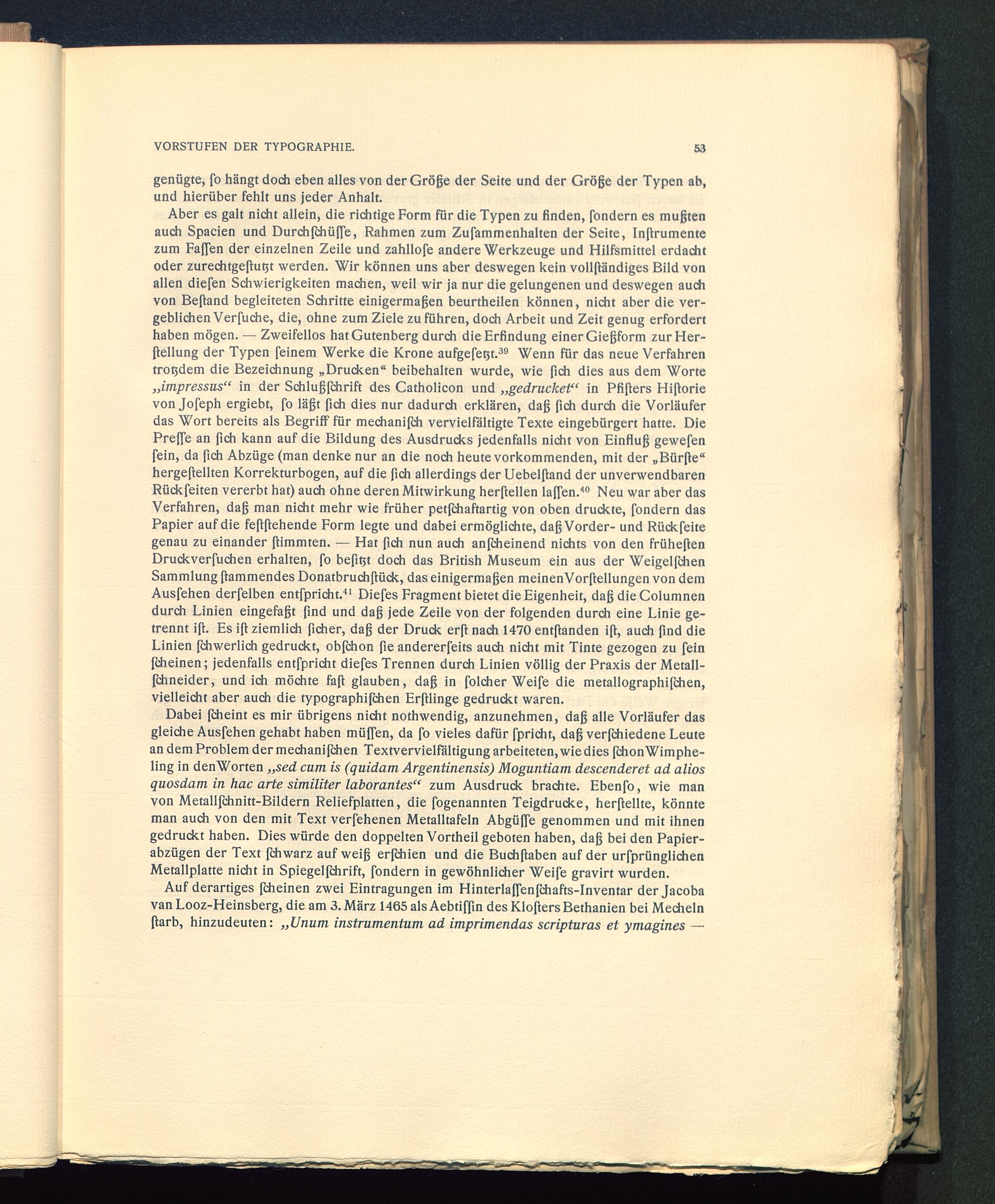 Auf derartiges fcheinen zwei Eintragungen im Hinterlaffenfchafts-Inventar der Jacobavan Looz-Heinsberg, die am 3. März 1465 als Aebtifßn des Klofters Bethanien bei Mechelnßarb, hinzudeuten: „Unum instrumentum ad imprimendas scripturas et ymagines —