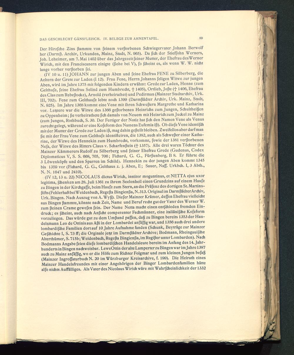 DAS GESCHLECHT GÄNSFLEISCH. IV. BELEGE ZUR AHNENTAFEL.