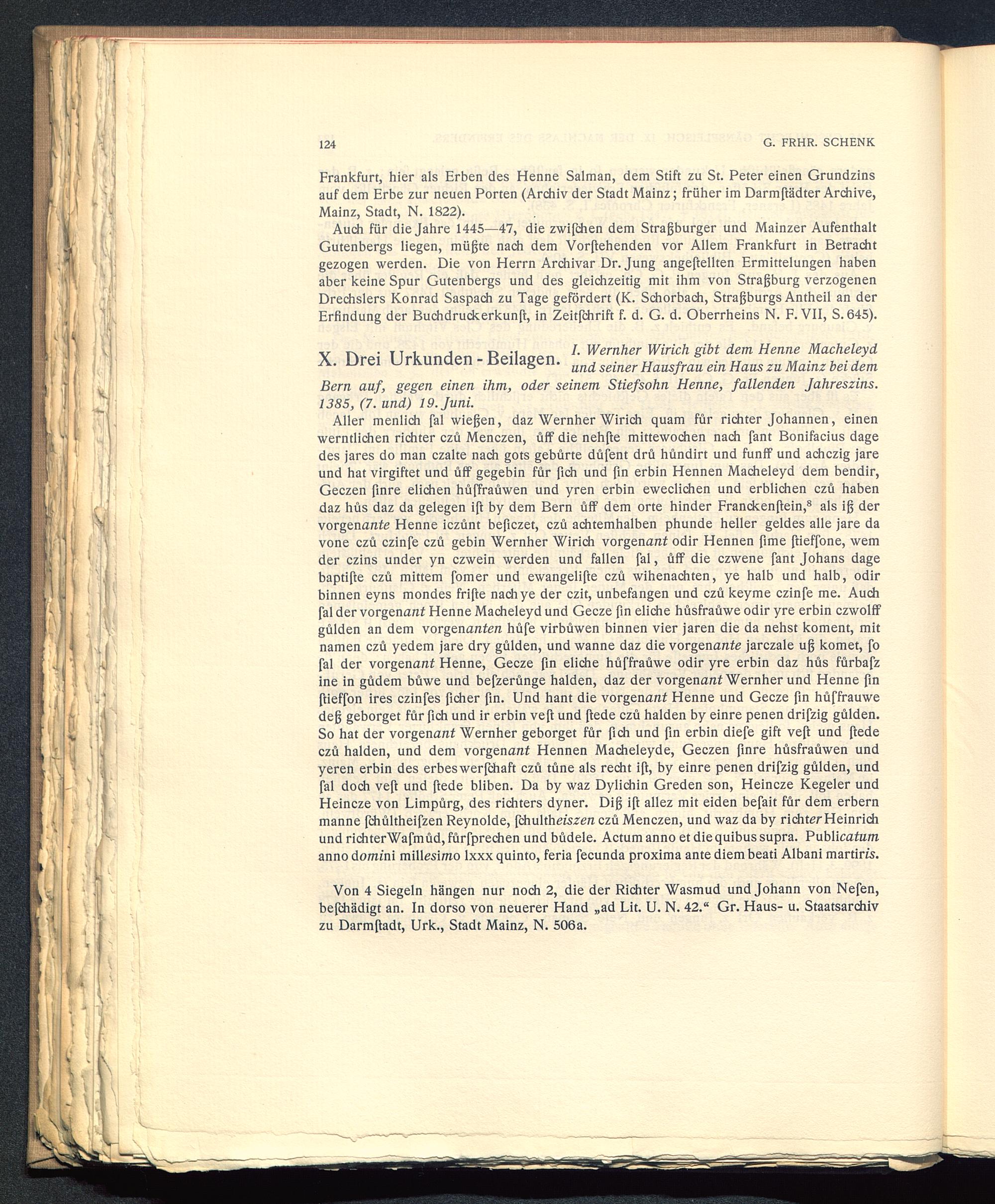 X. Drei Urkunden-Beilagen. undseinerHausf ein Haus Mainz bei dem