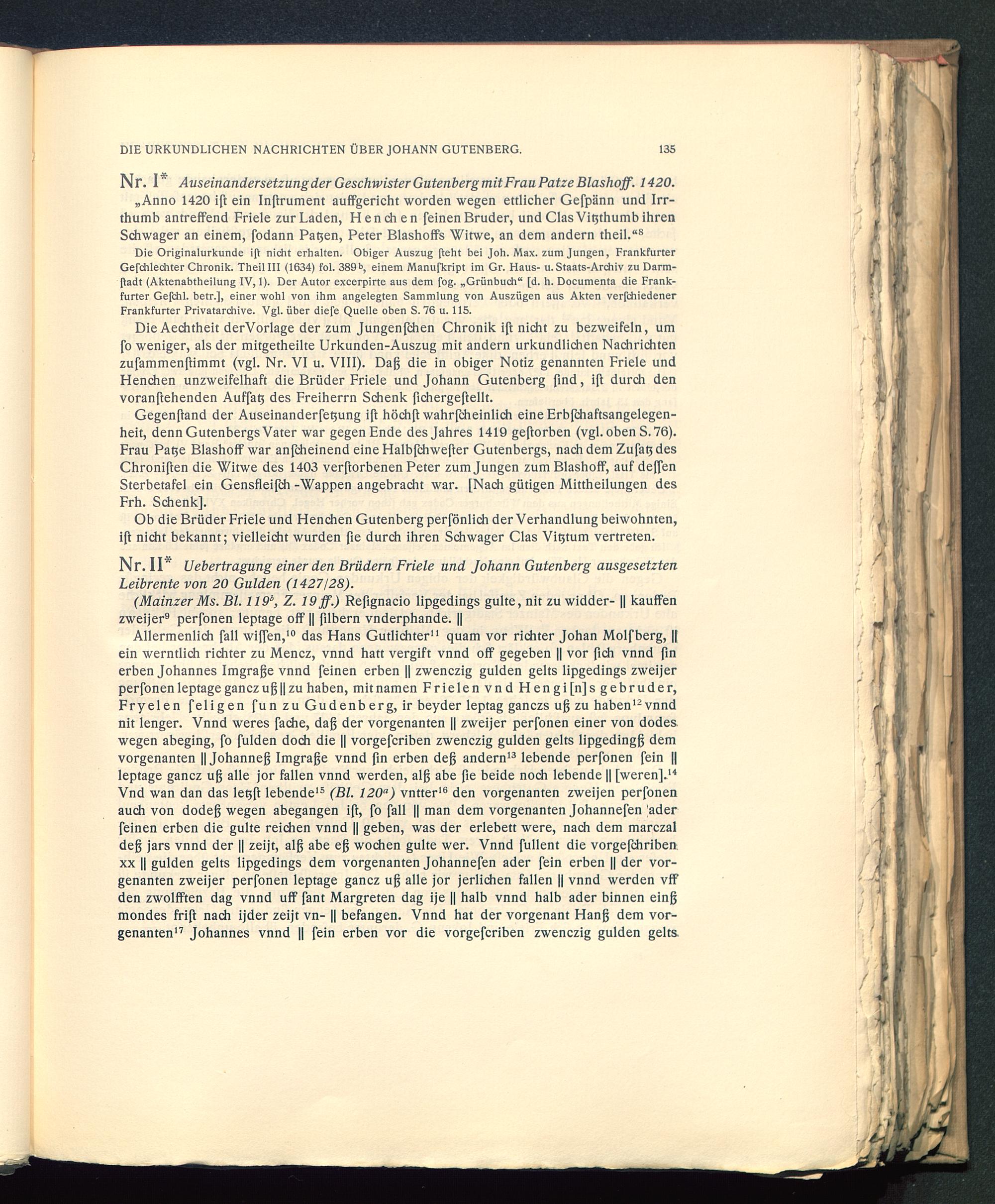 Die Aeditheit derVorlage der zum Jungenfchen Chronik ift nicht zu bezweifeln, umfo weniger, als der mitgetheilte Urkunden-Auszug mit andern urkundlichen Nachrichtenzufammenftimmt (vgl. Nr. VI u. VIII). Daß die in obiger Notiz genannten Friele undHenchen unzweifelhaft die Brüder Friele und Johann Gutenberg find, ift durch denvoranftehenden Auffatj des Freiherrn Schenk fichergeftellt.