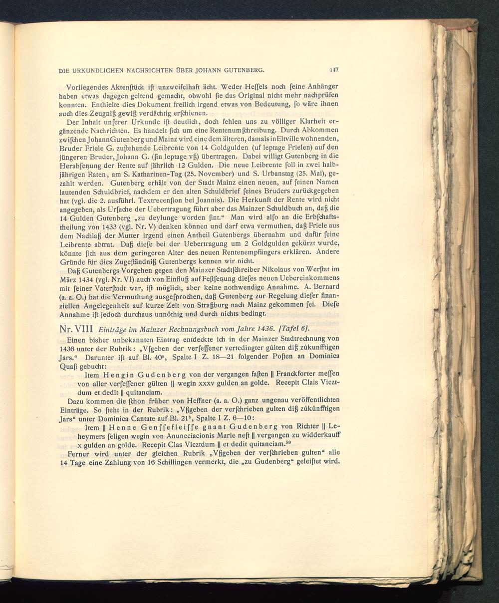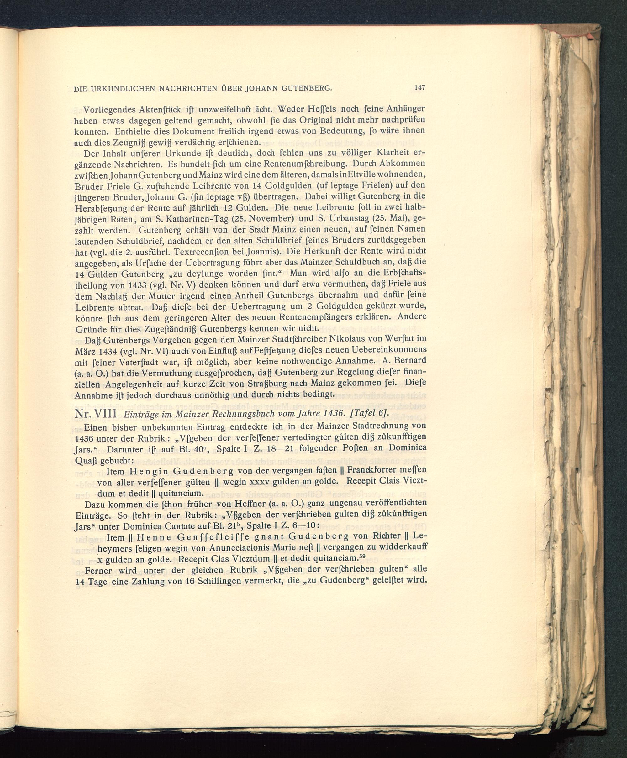 Nr. VIII Einträge im Mainzer Rechnungsbuch vom Jahre 1436. [Tafel 6],
