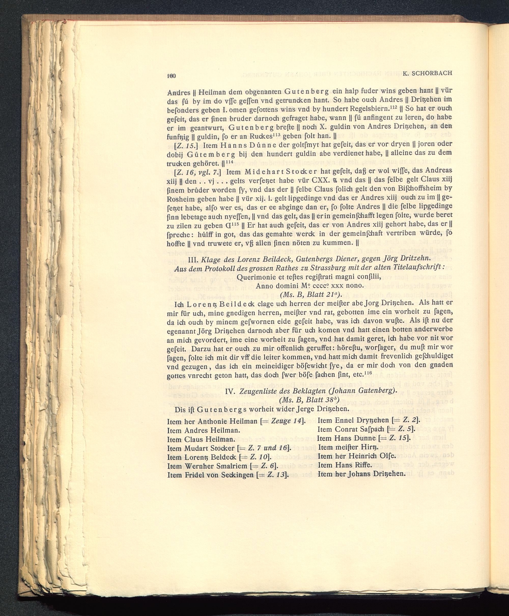 III. Klage des Lorenz Beildeck, Gutenbergs Diener, gegen Jörg Dritzehn.