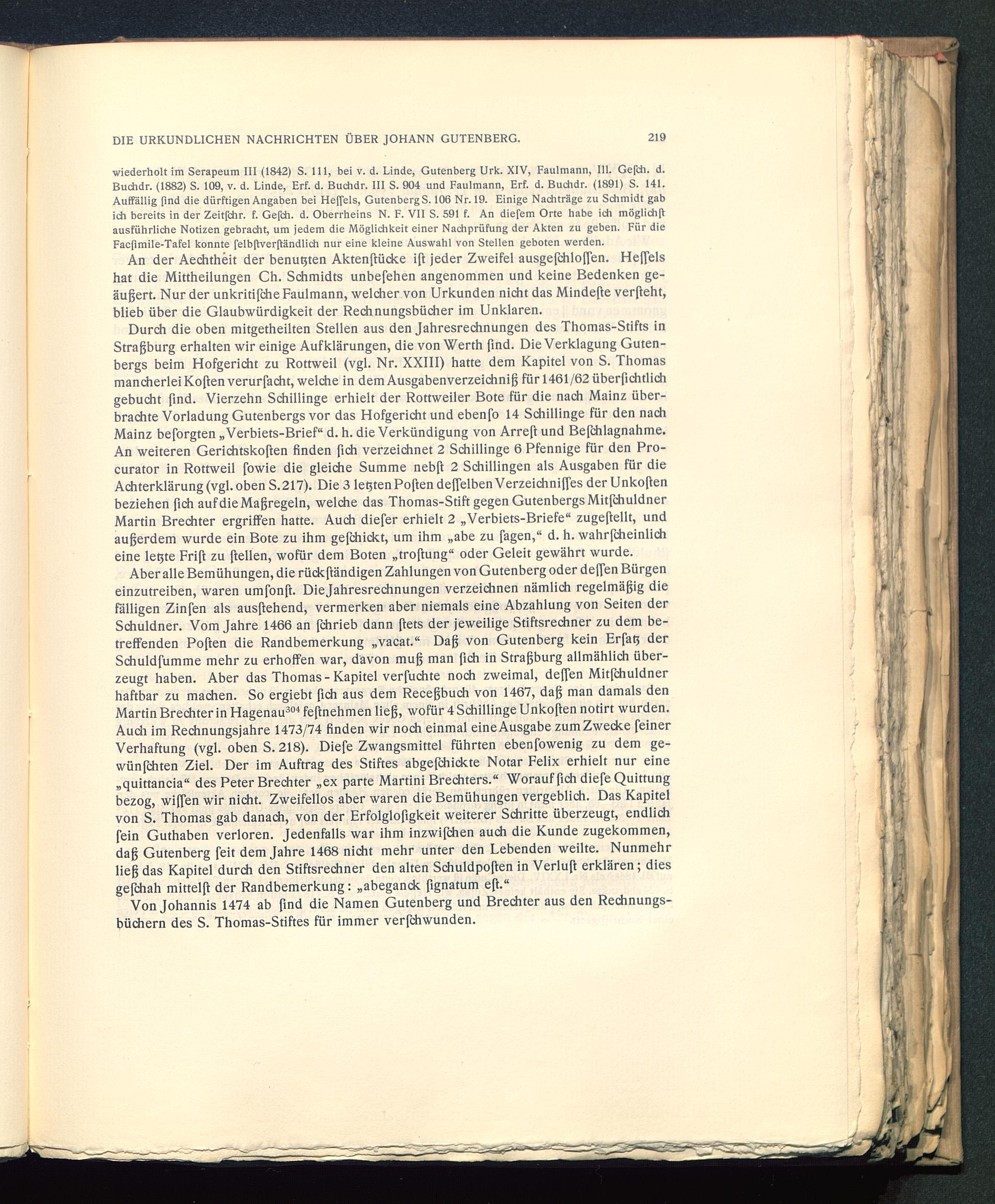 Von Johannis 1474 ab find die Namen Gutenberg und Brechter aus den Rechnungs-büchern des S. Thomas-Stiftes für immer verfchwunden.