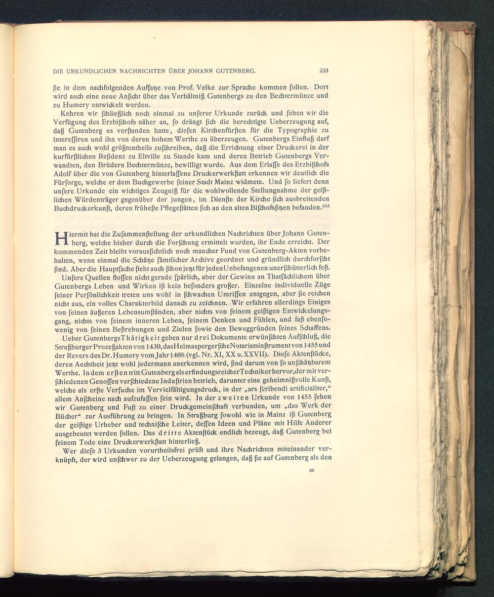 H iermit hat die Zufammenßellung der urkundlichen Nachrichten über Johann Guten-berg , welche bisher durch die Forfchung ermittelt wurden, ihr Ende erreicht. Derkommenden Zeit bleibt vorausfichtlich noch mancher Fund von Gutenberg -Akten Vorbe-halten, wenn einmal die Schäle fämtlicher Archive geordnet und gründlich durchforfchtfind. Aber die Hauptfache fteht auch fchonjetjtfür jedenUnbefangenen unerfchütterlich feß.