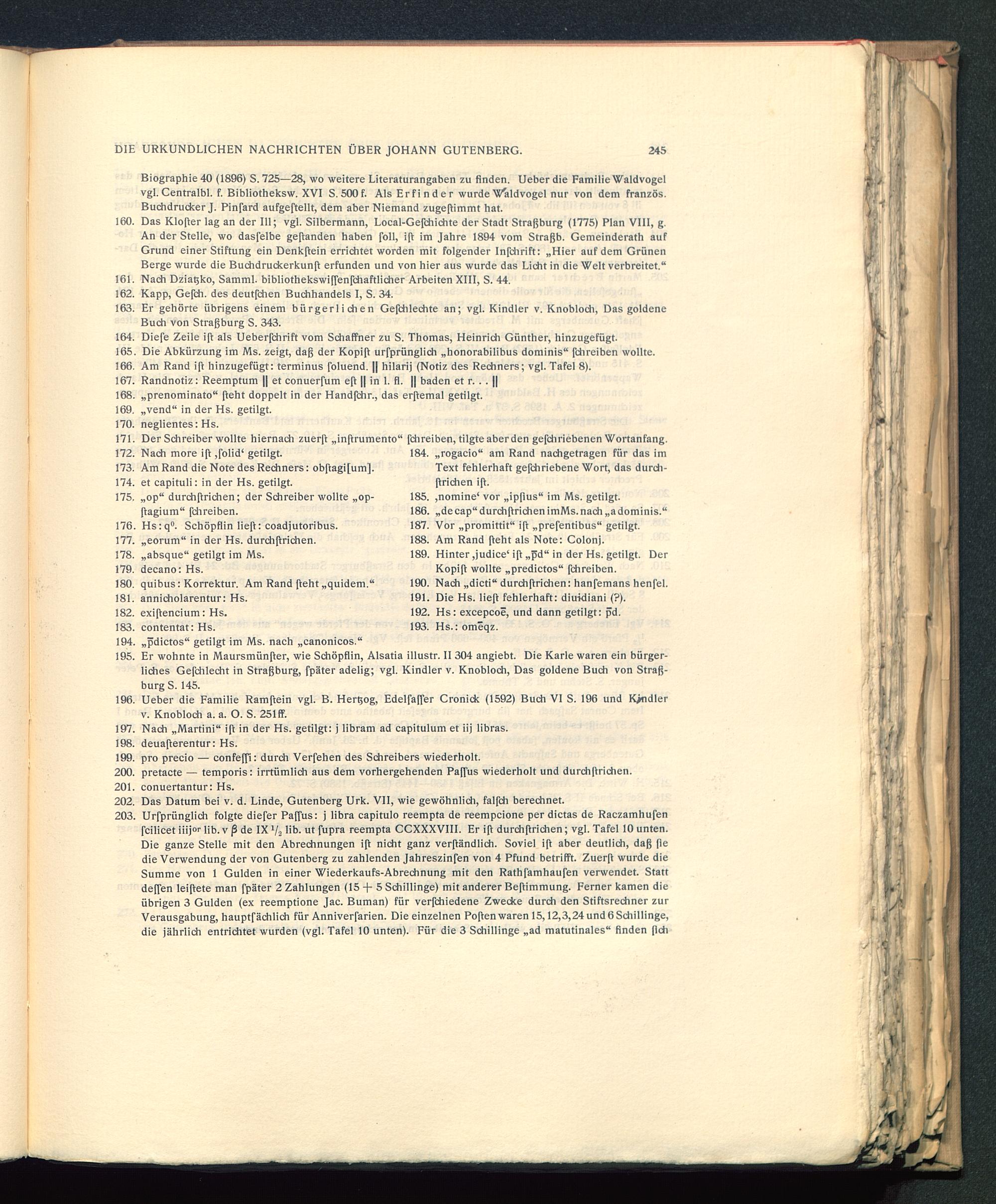 Das Kloßer lag an der 111; vgl. Silbermann, Local-Geßhichte der Stadt Straßburg (1775) Plan VIII, g.An der Stelle, wo dasfelbe geßanden haben (oll, iß im Jahre 1894 vom Straßb. Gemeinderath aufGrund einer Stiftung ein Denkßein errichtet worden mit folgender Infchrift: „Hier auf dem GrünenBerge wurde die Buchdruckerkunß erfunden und von hier aus wurde das Licht in die Welt verbreitet.“Nach Dziaßko, Samml. bibliothekswiffenfchaftlicher Arbeiten XIII, S. 44.