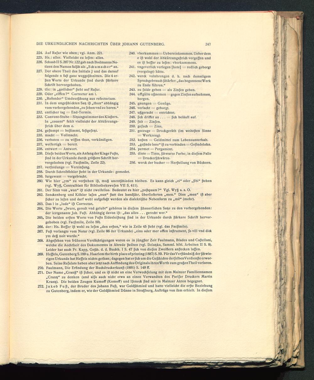 Abgefehen von früheren Verdächtigungen waren es in jüngßer Zeit Faulmann, Blades und Caßellani,welche die Aechtheit des Dokumentes in Abrede ßellten (vgl. Dziaßko, Samml. bibl. Arbeiten II S. 8).Leider hat auch Fr. Kapp, Gefch. d. d. Buchh. I S. 47 ßch von diefen Zweiflern anßecken laffen.Heffels, GutenbergS.189u. Haarlem thebirth placeofprinting(1887)S.59. FürdasVerßändniß der fchwie-rigen Urkunde hat Heffels nichts gethan; dagegen hat er ßch um die Gefchichte derfelbenVerdienße erwor-ben. Seine Refulate haben aber jeßt nach Auffindung des Originals ihrenWerth zum großenTheil verloren.Faulmann, Die Erfindung der Buchdruckerkunß (1891) S. 149 ff.