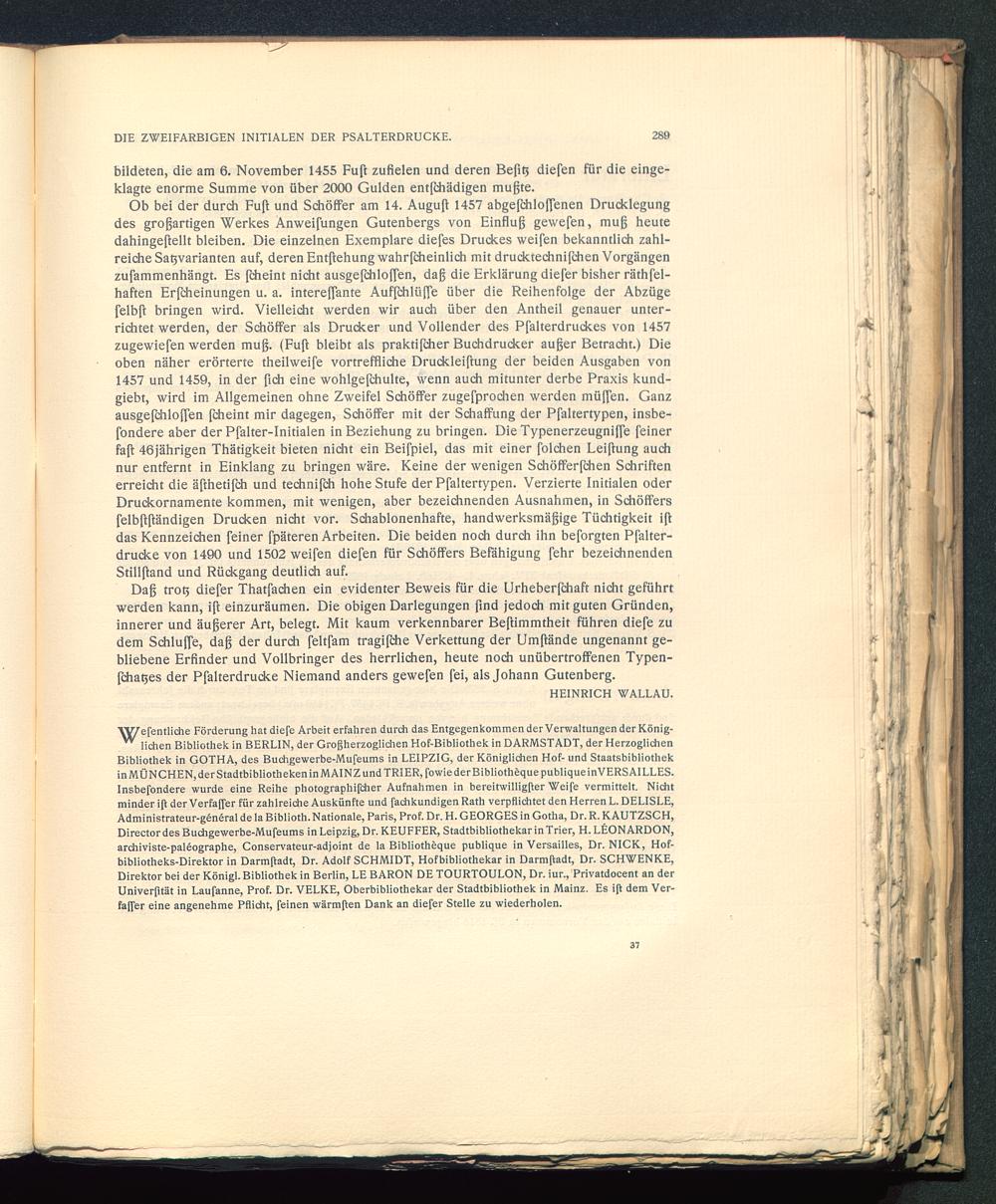 YWefentliche Förderung hat diefe Arbeit erfahren durch das Entgegenkommen der Verwaltungen der König -” liehen Bibliothek in BERLIN, der Großherzoglichen Hof-Bibliothek in DARMSTADT , der HerzoglichenBibliothek in GOTHA, des Buchgewerbe-Mufeums in LEIPZIG , der Königlichen Hof- und Staatsbibliothekin MÜNCHEN, der Stadtbibliotheken in MAINZ und TRIER , fowiederBibliothöque publique inVERSAILLES.Insbefondere wurde eine Reihe photographifdier Aufnahmen in bereitwilligßer Weife vermittelt. Nichtminder iß derVerfaffer für zahlreiche Auskünfte und fachkundigen Rath verpflichtet den Herren L. DELISLE,Administrateur-genöral de la Biblioth. Nationale, Paris, Prof. Dr. H. GEORGES in Gotha , Dr. R. KAUTZSCH,Director des Buchgewerbe-Mufeums in Leipzig, Dr. KEUFFER, Stadtbibliothekar in Trier , H. LÜONARDON,archiviste-paleographe, Conservateur-adjoint de la Bibliothöque publique in Versailles , Dr. NICK, Hof-bibliotheks-Direktor in Darmßadt, Dr. Adolf SCHMIDT, Hofbibliothekar in Darmßadt, Dr. SCHWENKE,Direktor bei der Königl. Bibliothek in Berlin , LE BARON DE TOURTOULON, Dr. iur., Privatdocent an derUniverfität in Laufanne, Prof. Dr. VELKE, Oberbibliothekar der Stadtbibliothek in Mainz . Es iß dem Ver-faffer eine angenehme Pflicht, feinen wärmßen Dank an diefer Stelle zu wiederholen.