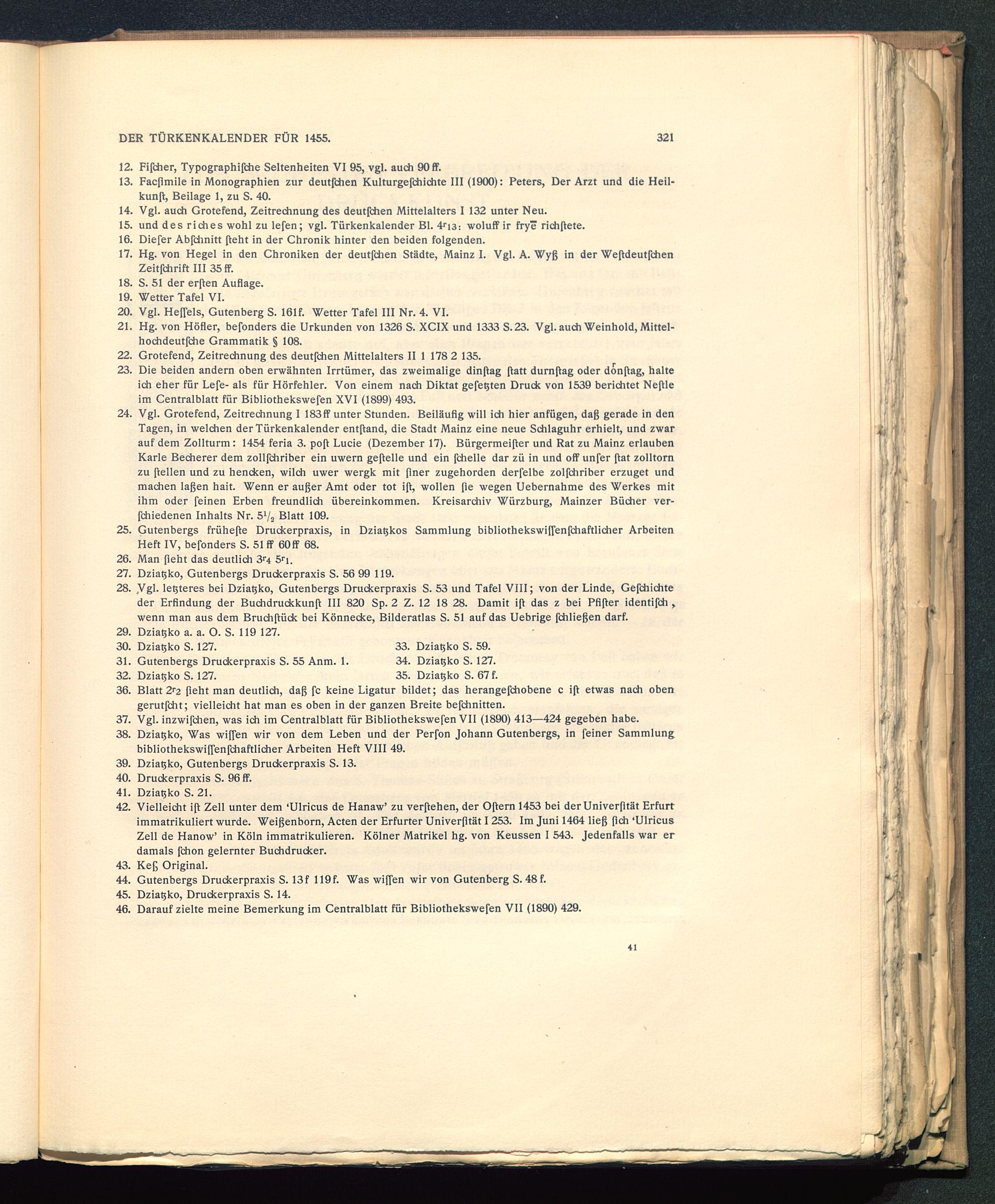 38. Dziaßko, Was wiffen wir von dem Leben und der Perfon Johann Gutenbergs, in feiner Sammlungbibliothekswiffenfchaftlicher Arbeiten Heft VIII 49.