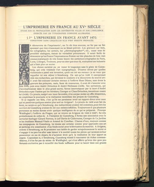 L’IMPRIMERIE EN FRANCE AU XV e SIÈCLE