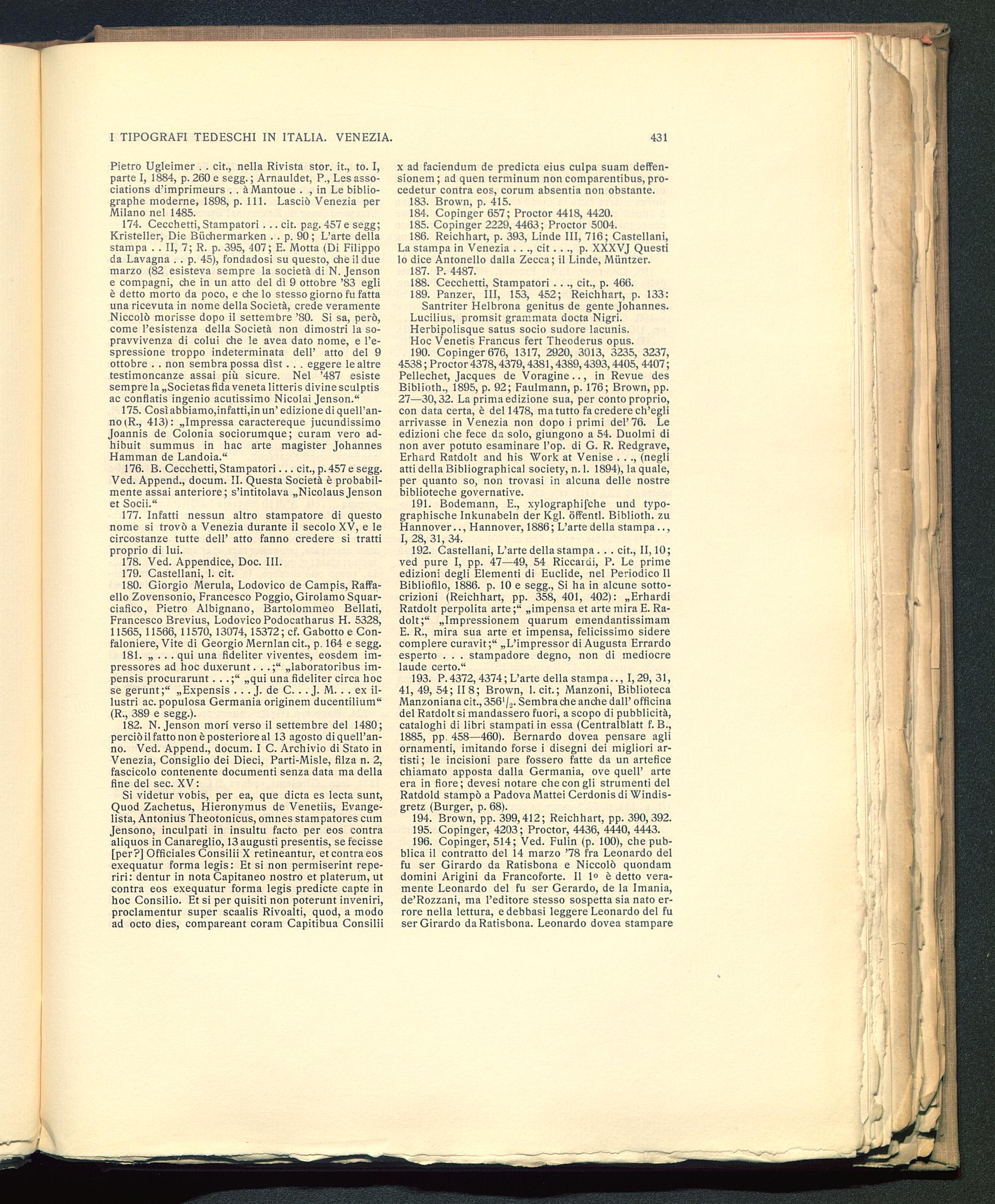 176. B. Cecchetti, Stampatori ... cit., p. 457 e segg.Ved. Append., docum. IL Questa Società è probabil-mente assai anteriore; s’intitolava «Nicolaus Jensonet Socii.“