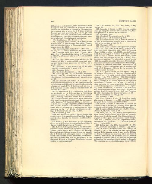 200. Copinger, 1298, 2022, 4198; Proctor, 4801,4802; Erra il Castellani (La stampa in Venezia . . .p. XXXIV), affermando che fu in Venezia dal 1473al 1487.