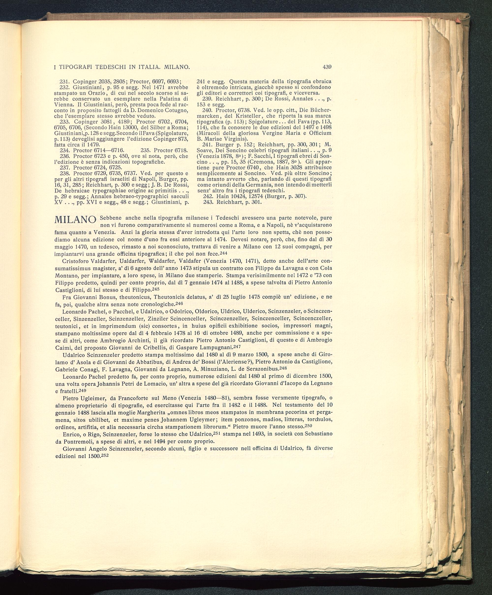 Udalrico Scinzenzeler predetto stampa moltissimo dal 1480 al dì 9 marzo 1500, a spese anche di Giro-lamo d’ Asola e di Giovanni de Abbatibus, di Andrea de’ Bossi (l’Aleriense?), Pietro Antonio da Castiglione,Gabriele Conagi, F. Lavagna, Giovanni da Legnano , A. Minuziano, L. de Serazonibus. 246