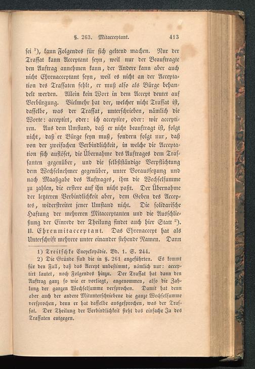 2) Die Gründe sind die in §. 261 angeführten. ES kommtfür den Fall, daß das Accept unbestimmt, nämlich nur: acccp-tirt lautet, noch Folgendes hinzu. Der Trassat hat dann denAuftrag ganz so wie er vorliegt, angenommen, also die Zah-lung der ganzen Wechselsumme versprochen. Damit hat dennaber auch der andere Mitunterschriebene die ganze Wechselsummeversprochen, denn er hat dasselbe ausgesprochen, was der Tras-sat. Der Theilung der Verbindlichkeit steht das einfache Ja desTrassaten entgegen.