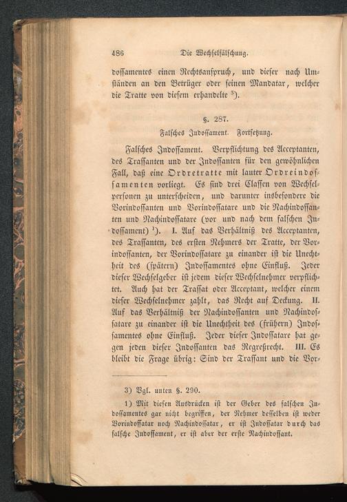 Falsches Indossament. Verpflichtung des Acceptantcn,des Trassanten und der Indossanten für den gewöhnlichenFall, daß eine Ordretratte mit lauter Ordreindos-samenten vorliegt. Es sind drei Classen von Wechsel-personen zu unterscheiden, und darunter insbesondere dieVorindossanten und Vorindossatare und die Nachindossan-ten und Nachindossatare (vor und nach dem falschen Jn-' dossament) ^). I. Auf das Verhältniß des Acceptanten,des Trassanten, des ersten Nehmers der Tratte, der Vor-indossanten, der Vorindossatare zu einander ist die Unecht-heit des (spätern) Indossamentes ohne Einfluß. Jederdieser Wechselgcber ist jedem dieser Wechselnehmer verpflich-tet. Auch hat der Trassat oder Acceptaut, welcher einemdieser Wechselnehmer zahlt, das Recht auf Deckung. II.Auf das Verhältniß der Nachindossanten und Nachindos-satare zu einander ist die Unechtheit des (frühern) Indos-samentes ohne Einfluß. Jeder dieser Jndossatare hat ge-gen jeden dieser Indossanten das Regreßrecht. III. Esbleibt die Frage übrig: Sind der Trassant und die Vor-