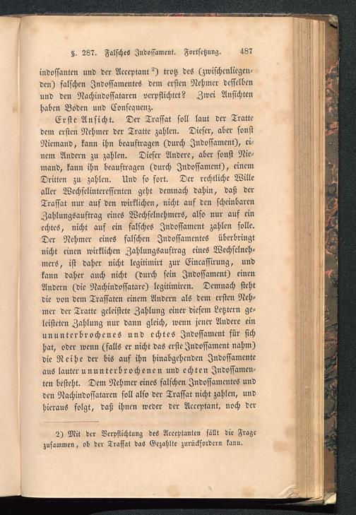 Indossanten und der Acceptant ^) trotz des (zwischenliegen-den) falschen Indossamentes dem ersten Nehmer desselbenund den Nachindossataren verpflichtet? Zwei Ansichtenhaben Boden und Conscquenz.