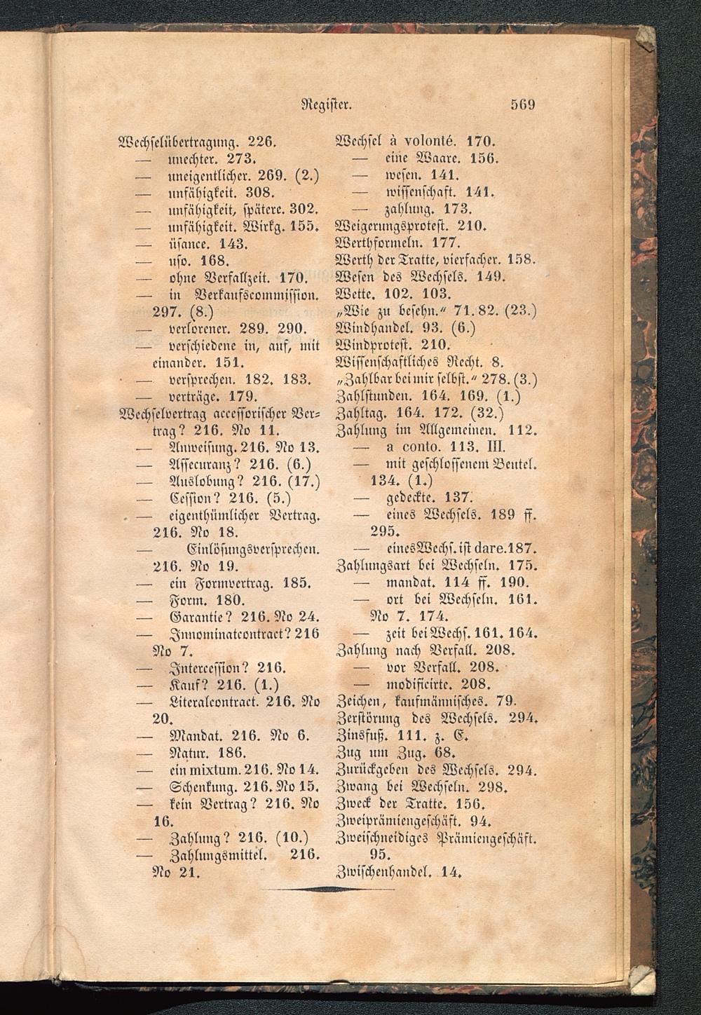 Zurückgeben des Wechsels. 294.Zwang bei Wechseln. 298.Zweck der Tratte. 156.Zweiprämiengeschäft. 94.Zweischneidiges Prämicngeschäft.95.