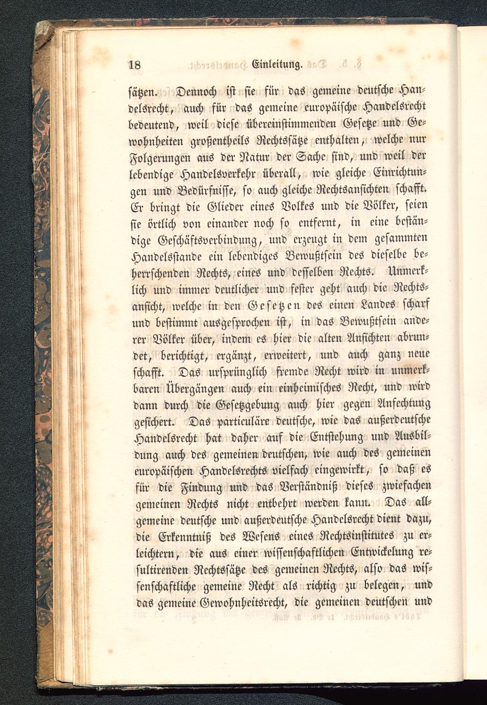 sätzen. Dennoch ist sie für das gemeine deutsche Han-delsrecht, auch für das gemeine europäische Handelsrechtbedeutend, weil diese übereinstimmenden Gesetze und Ge-wohnheiten großentheils Rechtssätze enthalten, welche nurFolgerungen aus der Natur der Sache sind, und weil derlebendige Handelsverkehr überall, wie gleiche Einrichtun-gen und Bedürfnisse, so auch gleiche Rechtsansichten schafft.Er bringt die Glieder eines Volkes und die Völker, seiensie örtlich von einander noch so entfernt, in eine bestän-dige Geschäftsverbindung, und erzeugt in dem gesammtenHandelsstande ein lebendiges Bewußtsein des dieselbe be-herrschenden Rechts, eines und desselben Rechts. Unmcrk-lich und immer deutlicher und fester geht auch die Rechts-ansicht, welche in den Gesetzen des einen Landes scharfund bestimmt ausgesprochen ist, in das Bewußtsein ande-rer Völker über, indem es hier die alten Ansichten abrun-det, berichtigt, ergänzt, erweitert, und auch ganz neueschafft. Das ursprünglich fremde Recht wird in unmerk-baren Übergängen auch ein einheimisches Recht, und wirddann durch die Gesetzgebung auch hier gegen Anfechtunggesichert. Das particuläre deutsche, wie das außerdcutscheHandelsrecht hat daher auf die Entstehung und Ausbil-dung auch des gemeinen deutschen, wie auch des gemeineneuropäischen Handelsrechts vielfach eingewirkt, so daß esfür die Findung und das Verständniß dieses zwiefachengemeinen Rechts nicht entbehrt werden kann. Das all-gemeine deutsche und außerdeutsche Handelsrecht dient dazu,die Erkenntniß des Wesens eines Nechtsinstitutes zu er-leichtern, die aus einer wissenschaftlichen Entwickelung re-sultirenden Rcchtssätze des gemeinen Rechts, also das wis-senschaftliche gemeine Recht als richtig zu belegen, unddas gemeine Gewohnheitsrecht, die gemeinen deutschen und