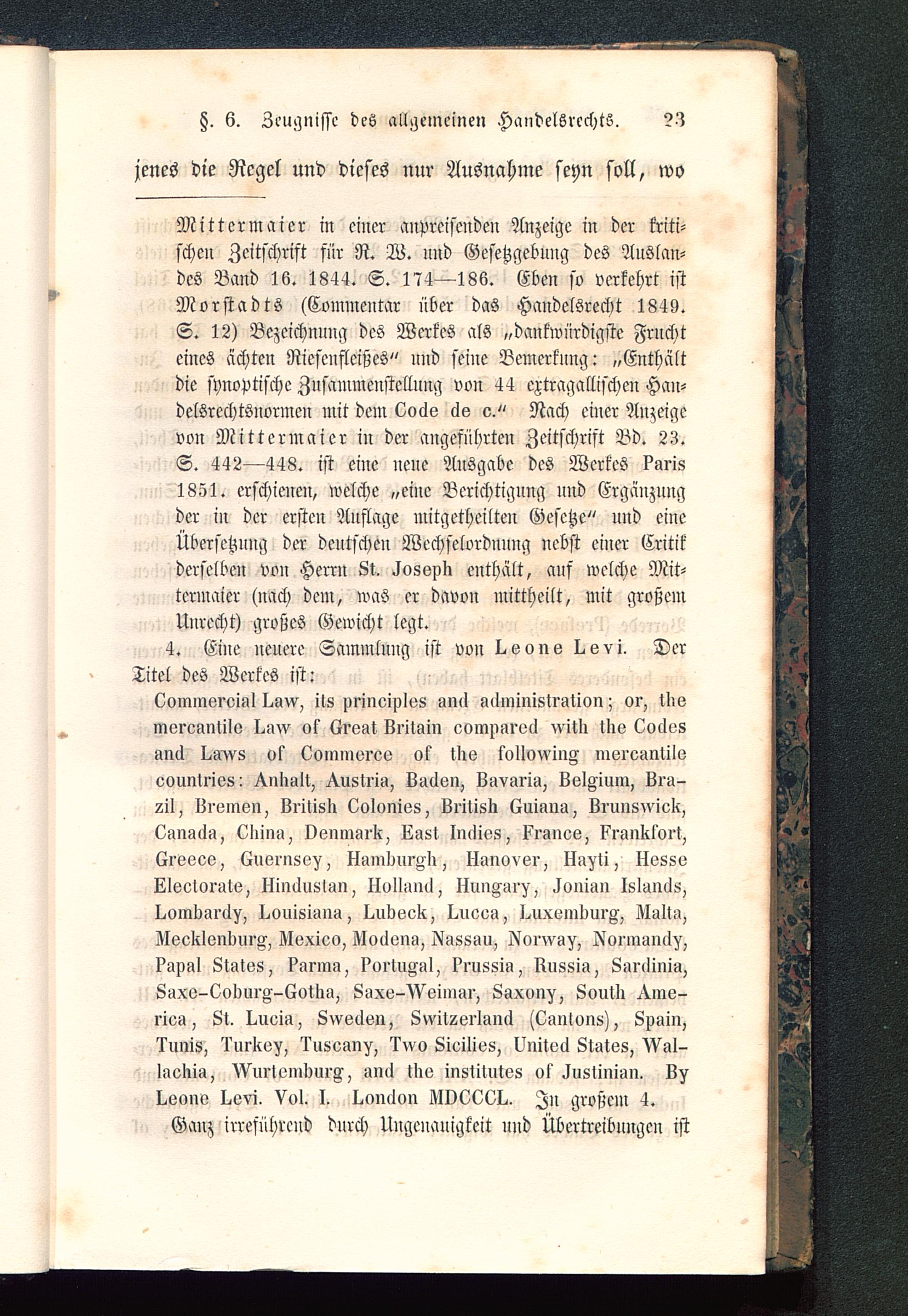 Mittermaier in einer anpreisenden Anzeige in der kriti-schen Zeitschrist für R. W. nnd Gesetzgebung des Auslan-des Band 16. 1814. S. 174—186. Eben so verkehrt istMorstadts (Kommentar über das Handelsrecht 1849.S. 12) Bezeichnung des Werkes als „dankwürdigste Fruchteines ächten Riesenfleißes" nnd seine Bemerkung: „Enthältdie synoptische Zusammenstellung von 44 extragallischen Han-delsrechtsnormen mit dem Lodo äs o." Nach einer Anzeigevon Mittermaier in der angeführten Zeitschrist Bd. 23.S. 442—448. ist eine neue Ausgabe des Werkes Paris 1851. erschienen, welche „eine Berichtigung und Ergänzungder in der ersten Auflage mitgetheilten Gesetze" und eineÜbersetzung der deutschen Wechselordnung nebst einer Critikderselben von Herrn 8t. dosopb enthält, ans welche Mit-termaier (nach dem, was er davon mittheilt, mit großemUnrecht) großes Gewicht legt.