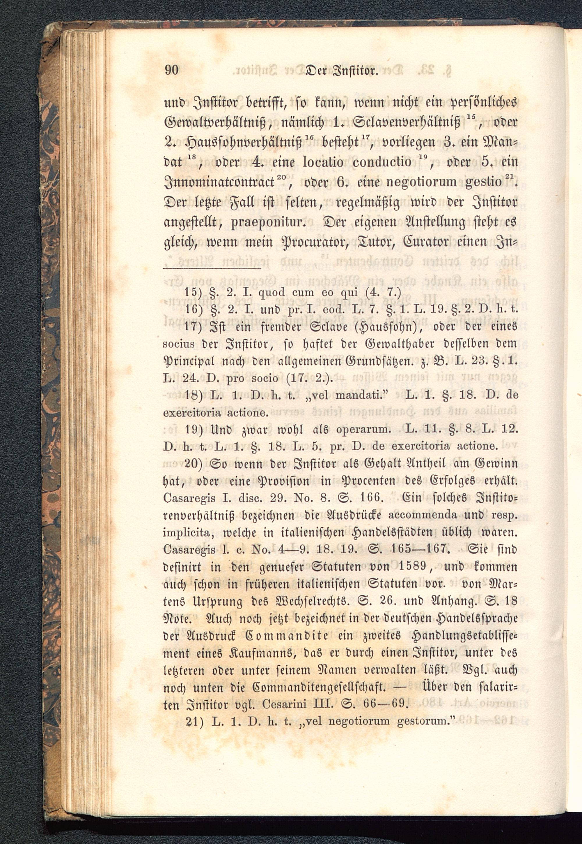 und Jnstitor betrifft, so kann, wenn nicht ein persönlichesGewaltverhältniß, nämlich 1. Sclavenverhältniß oder2. Haussohnverhältnißbesteht", vorliegen 3. ein Man-dat oder 4. eine Icxmtic» elincluotic» oder 5. einJnnominatcontract^, oder 6. eine noZ-otiorum ^oslio^.Der letzte Fall ist selten, regelmäßig wird der Jnstitorangestellt, praepcmllur. Der eigenen Anstellung steht esgleich, wenn mein Prokurator, Tutor, Curator einen Jn-