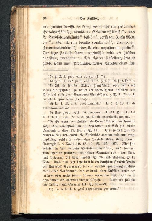 17) Ist ein fremder Sclave (Haussohn), oder der einessooius der Jnstitor, so haftet der Gewalthaber desselben demPrincipal nach den allgemeinen Grundsätzen, z. B. 4. 23. H.l.4/. 24. 4. pro socio (17. 2.).