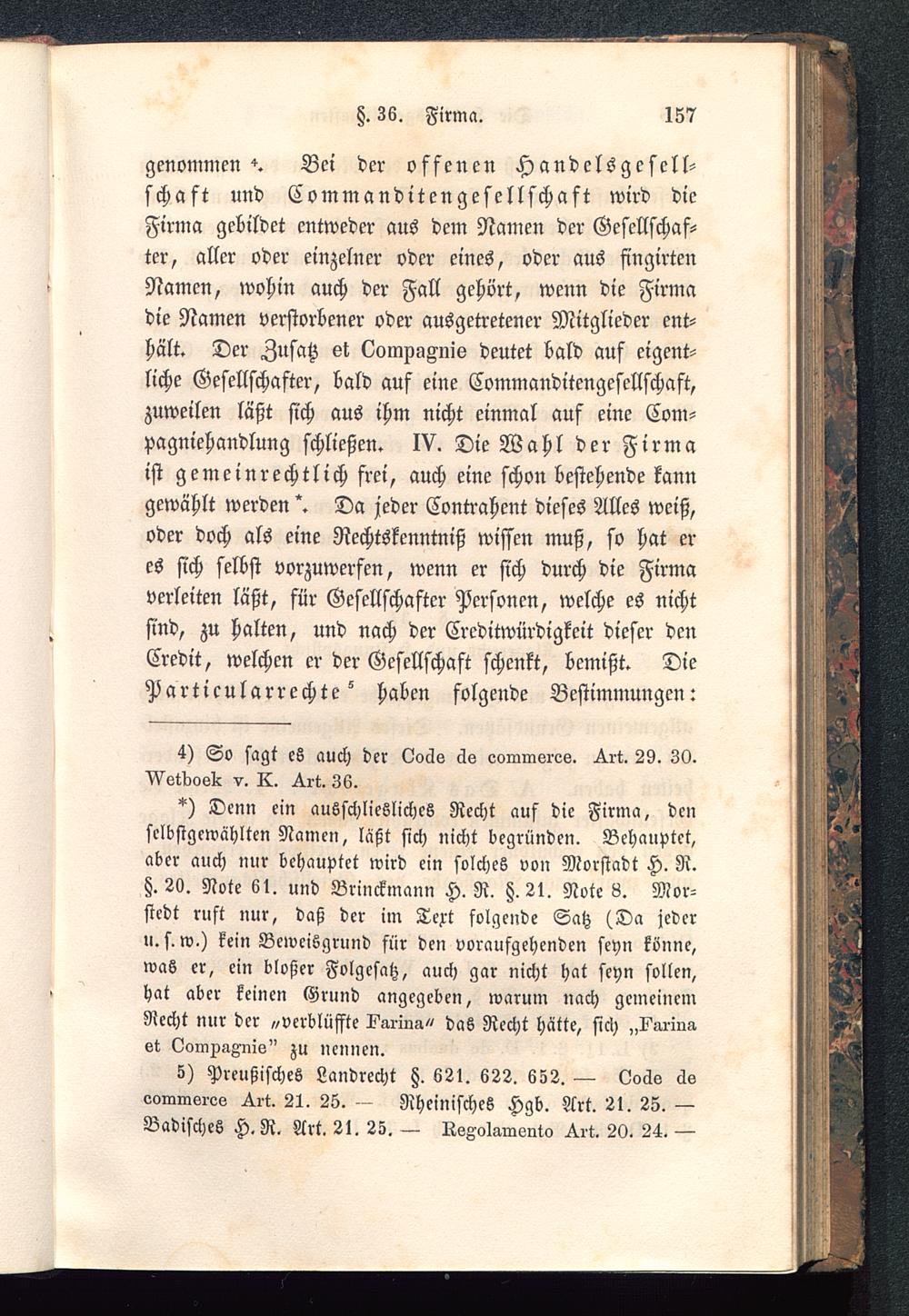 genommene Bei der offenen Handelsgesell-schaft und Commanditengesellschaft wird dieFirma gebildet entweder aus dem Namen der Gesellschaf-ter, aller oder einzelner oder eines, oder ans fingirtenNamen, wohin auch der Fall gehört, wenn die Firmadie Namen verstorbener oder ausgetretener Mitglieder ent-hält. Der Zusatz et OompuAnio deutet bald auf eigent-liche Gesellschafter, bald auf eine Commanditengesellschaft,zuweilen läßt sich aus ihm nicht einmal auf eine Com-pagniehandlung schließen. IV. Die Wahl der Firmaist gemeinrechtlich frei, auch eine schon bestehende kanngewählt werden *. Da jeder Contrahent dieses Alles weiß,oder doch als eine Rechtskenntniß wissen muß, so hat eres sich selbst vorzuwerfen, wenn er sich durch die Firmaverleiten läßt, für Gesellschafter Personen, welche es nichtsind, zu halten, und nach der Creditwiirdigkeit dieser denCredit , welchen er der Gesellschaft schenkt, bemißt. DieParticularrechte ° haben folgende Bestimmungen: