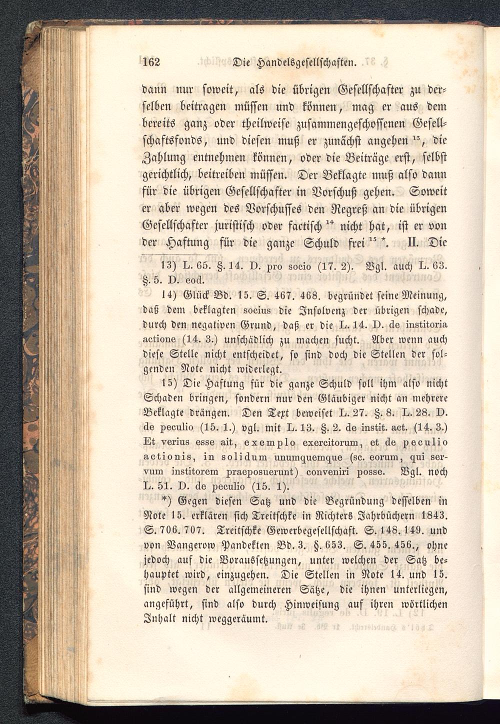 *) Gegen diesen Satz und die Begründung desselben inNote 15. erklären sich Treitschke in Richters Jahrbüchern 1843.S. 766. 767. Treitschke GeWerbegesellschaft. S. 148. 149. undvon Vangerow Pandekten Bd. 3. h. 653. S. 455. 456., ohnejedoch auf die Voraussetzungen, unter welchen der Satz be-hauptet wird, einzugehen. Die Stellen in Note 14. und 15.sind wegen der allgemeineren Sätze, die ihnen unterliegen,angeführt, sind also durch Hinweisung auf ihren wörtlichenInhalt nicht weggeräumt.