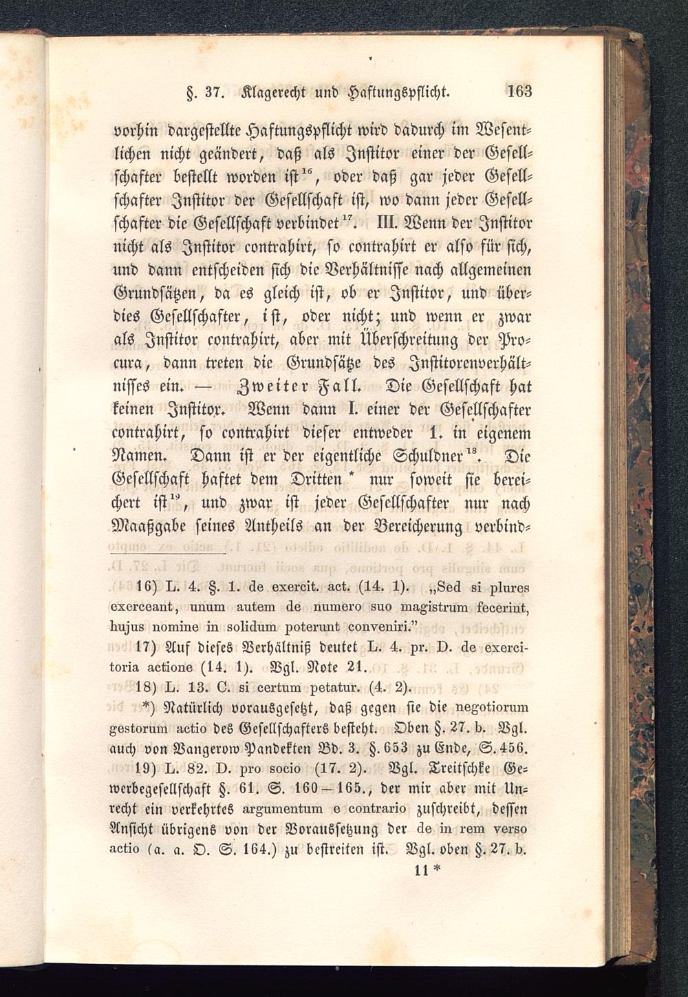 19) I-. 82. I). xro sosio (17. 2). Vgl. Treitschke Ge-werbegesellschaft H. 61. S. 169—165., der mir aber mit Un-recht ein verkehrtes ÄrAnmentum v eontrario zuschreibt, dessenAnsicht übrigens von der Voraussetzung der äs in rsm vsrso-istio sa. a. O. S. 164.) zu bcstreiten ist. Vgl. oben Z. 27. 6.