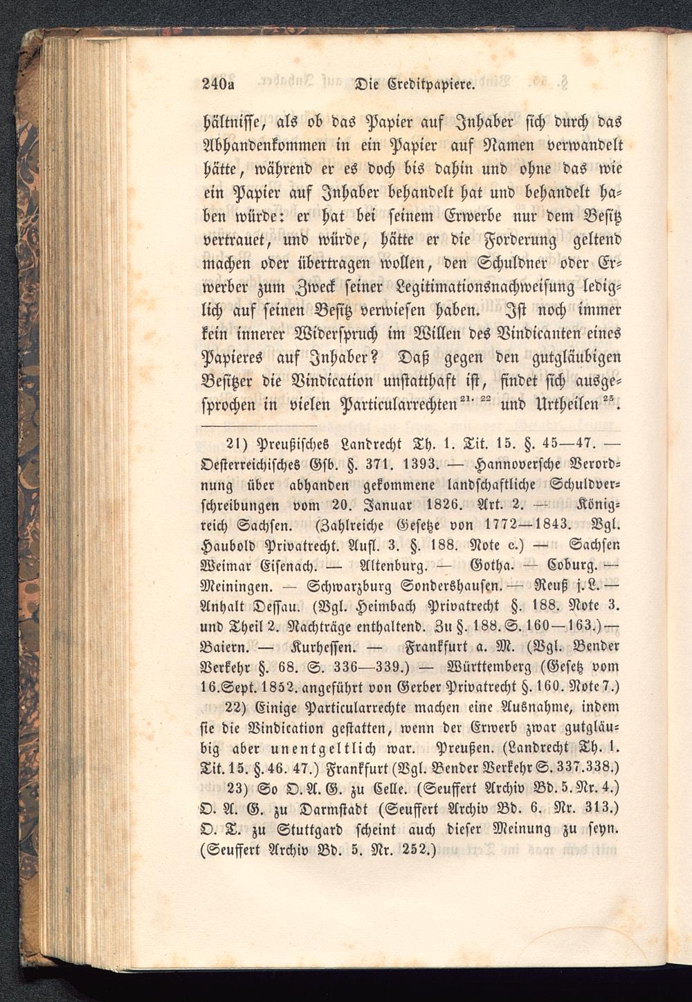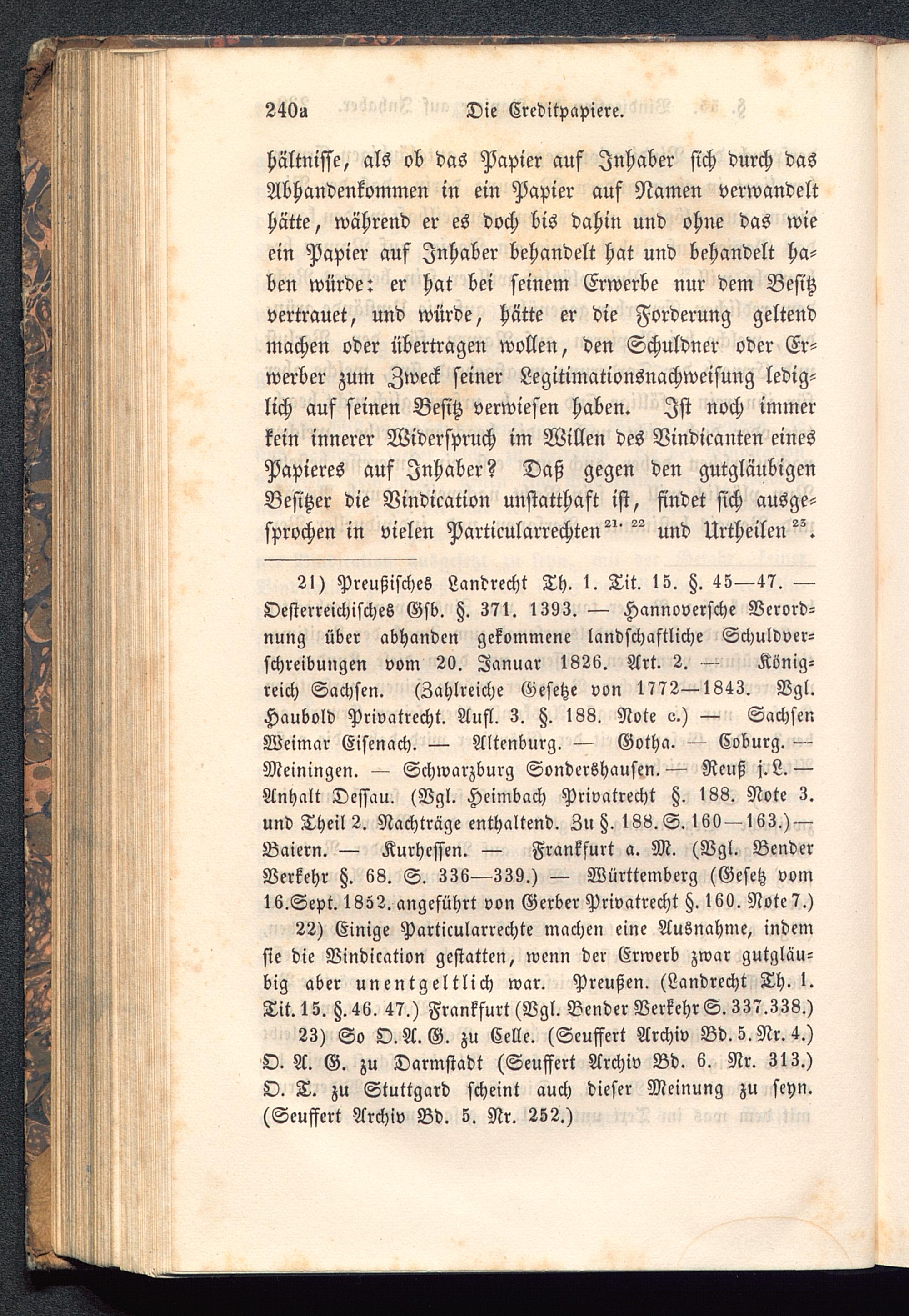 22) Einige Particularrechte machen eine Ausnahme, indemsie die Vindication gestatten, wenn der Erwerb zwar gutgläu-big aber unentgeltlich war. Preußen . (Landrecht Th. I.Tit. 15. tz.46. 47.) Frankfurt (Vgl. Bender Verkehr S. 337.338.)