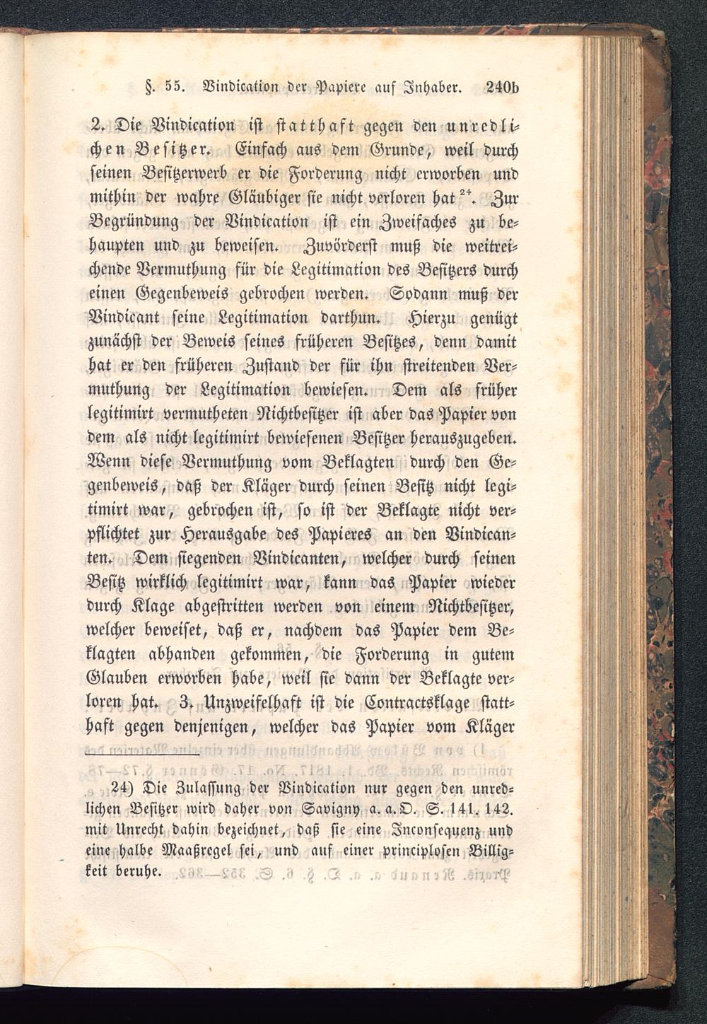 24) Die Zulassung der Vindication nur gegen den unred-lichen Besitzer wird daher von Savigny a. a. O. S. l4l. 142.mit Unrecht dahin bezeichnet, daß sie eine Znconsequenz undeine halbe Maaßregel sei, und auf einer principlosen Billig-keit beruhe. ,^im—,p<u> .V .i« ,5 ... ... »,U.-zUi,^