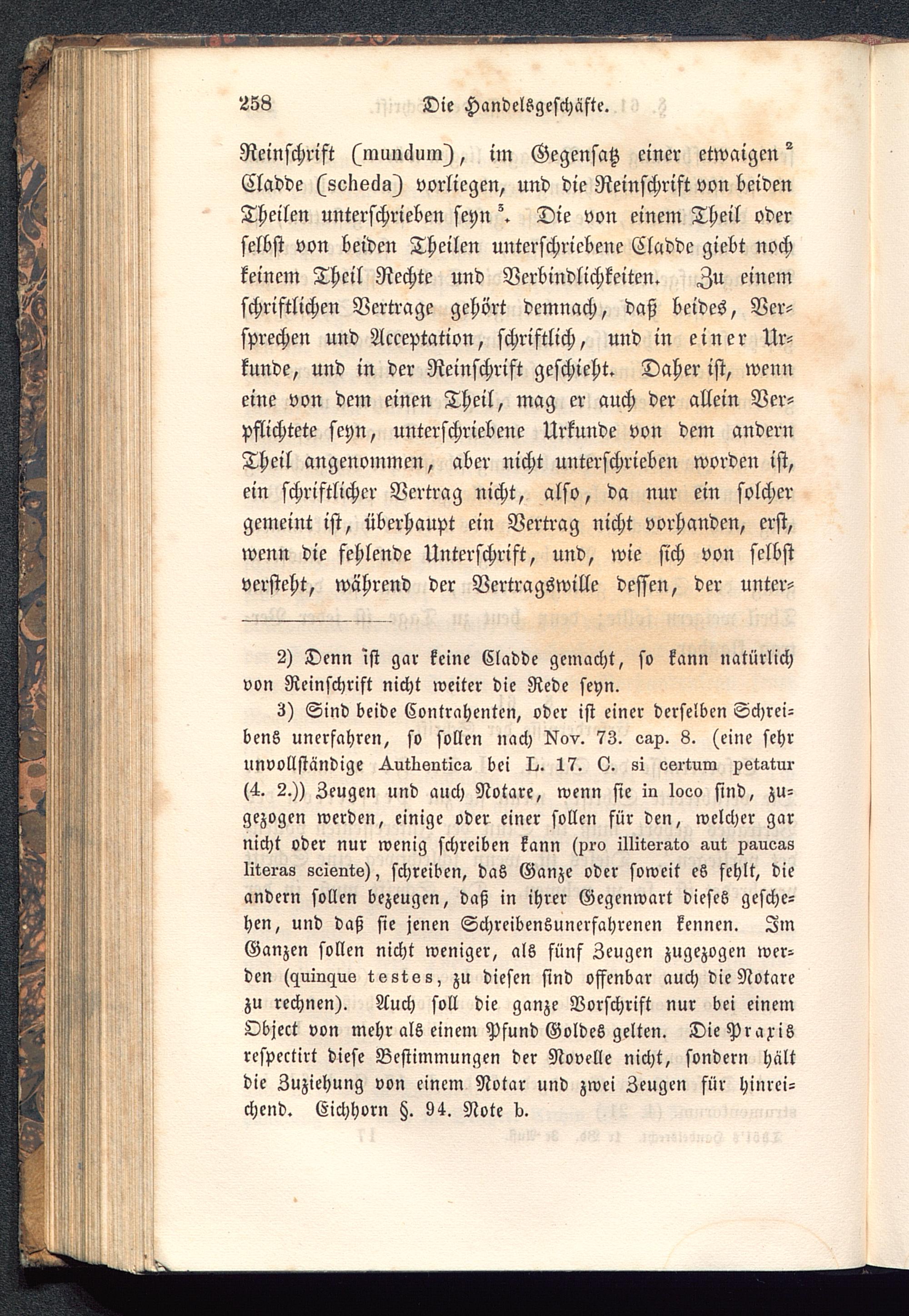 3) Sind beide Contrahenten, oder ist einer derselben Schrei-bens unerfahren, so sollen nach Uov. 73. eax. 8. (eine sehrunvollständige ^utllsutios, bei I-. 17. si osrtum pötatur(4. 2.)) Zeugen und auch Notare, wenn sie in looo sind, zu-gezogen werden, einige oder einer sollen für den, welcher garnicht oder nur wenig schreiben kann (pro illitsrato aut pauoaslitoras seisntö), schreiben, das Ganze oder soweit es fehlt, dieandern sollen bezeugen, daß in ihrer Gegenwart dieses gesche-hen, und daß sie jenen Schreibensunerfahrenen kennen. ImGanzen sollen nicht weniger, als fünf Zeugen zugezogen wer-den (guingus tostss, zu diesen sind offenbar auch die Notarezu rechnen). Auch soll die ganze Vorschrift nur bei einemObject von mehr als einem Pfund Goldes gelten. Die Praxisrespectirt diese Bestimmungen der Novelle nicht, sondern hältdie Zuziehung von einem Notar und zwei Zeugen für hinrei-chend. Eichhorn §. 94. Note d.